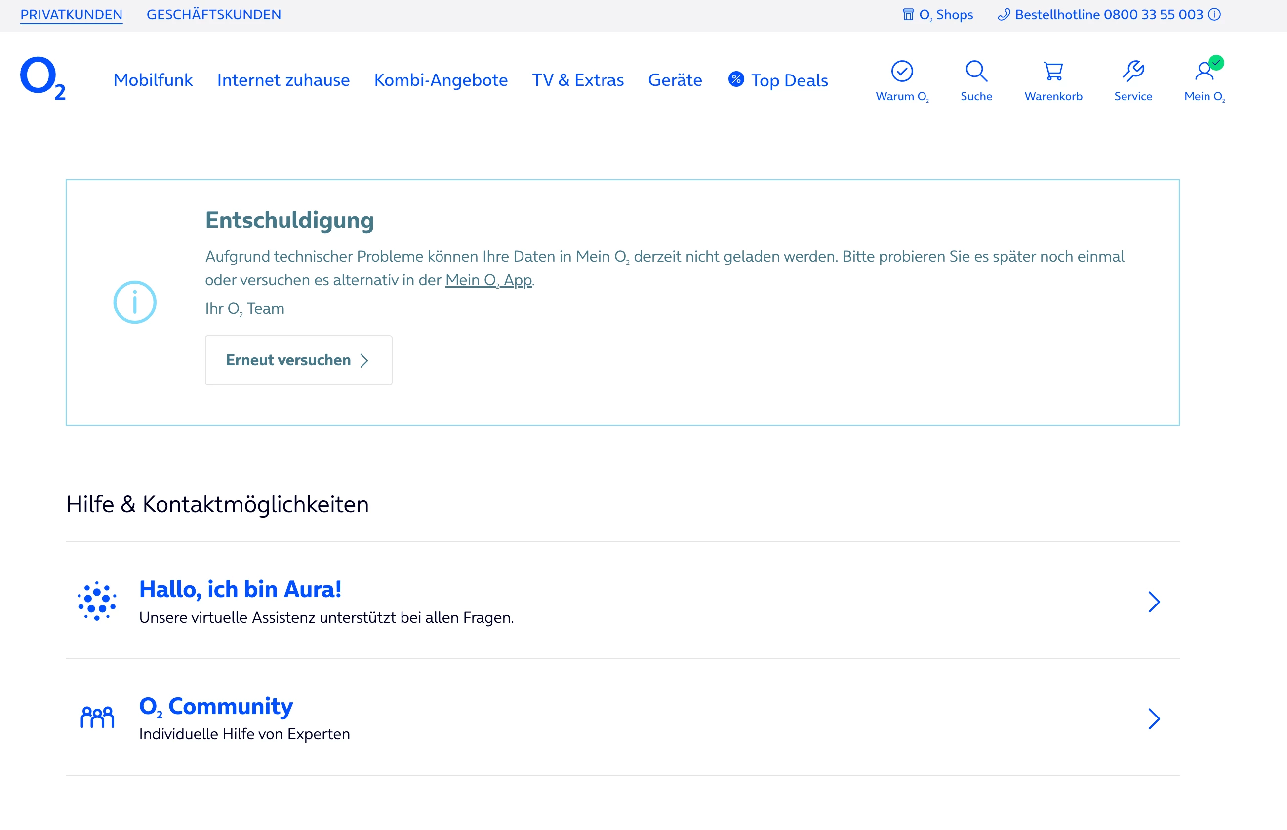 bin ich der Einzige, der massive Probleme mit dem o2 Webportal über jegliche Browser, sei es Edge, Chrome, Firefox oder Safari hat und bei dem dazu die App auf iOS-Geräten ebenfalls absolut unzuverlässig funktioniert? Ich kann es mir nicht vorstellen…