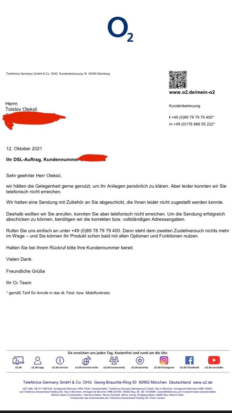Guten Tag, gestern habe ich diesen Brief erhalten, in dem ich gebeten wurde, die Hotline anzurufen und meine korrekte Adresse zu hinterlassen.  Aber ich habe 5 mal angerufen und niemand hat das Telefon beantwortet oder zurückgerufen.  Darf ich Ihnen hier die richtige Adresse hinterlassen?  Oder dass sie mich zurückrufen?