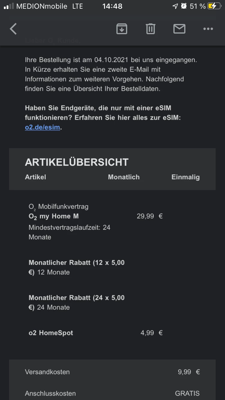 Nein, Ich habe am 0.7.10.2021 meine neue SIM Karte bestellt, da Ich gerade vom Ausland angekommen bin und kein Mobilnetz habe