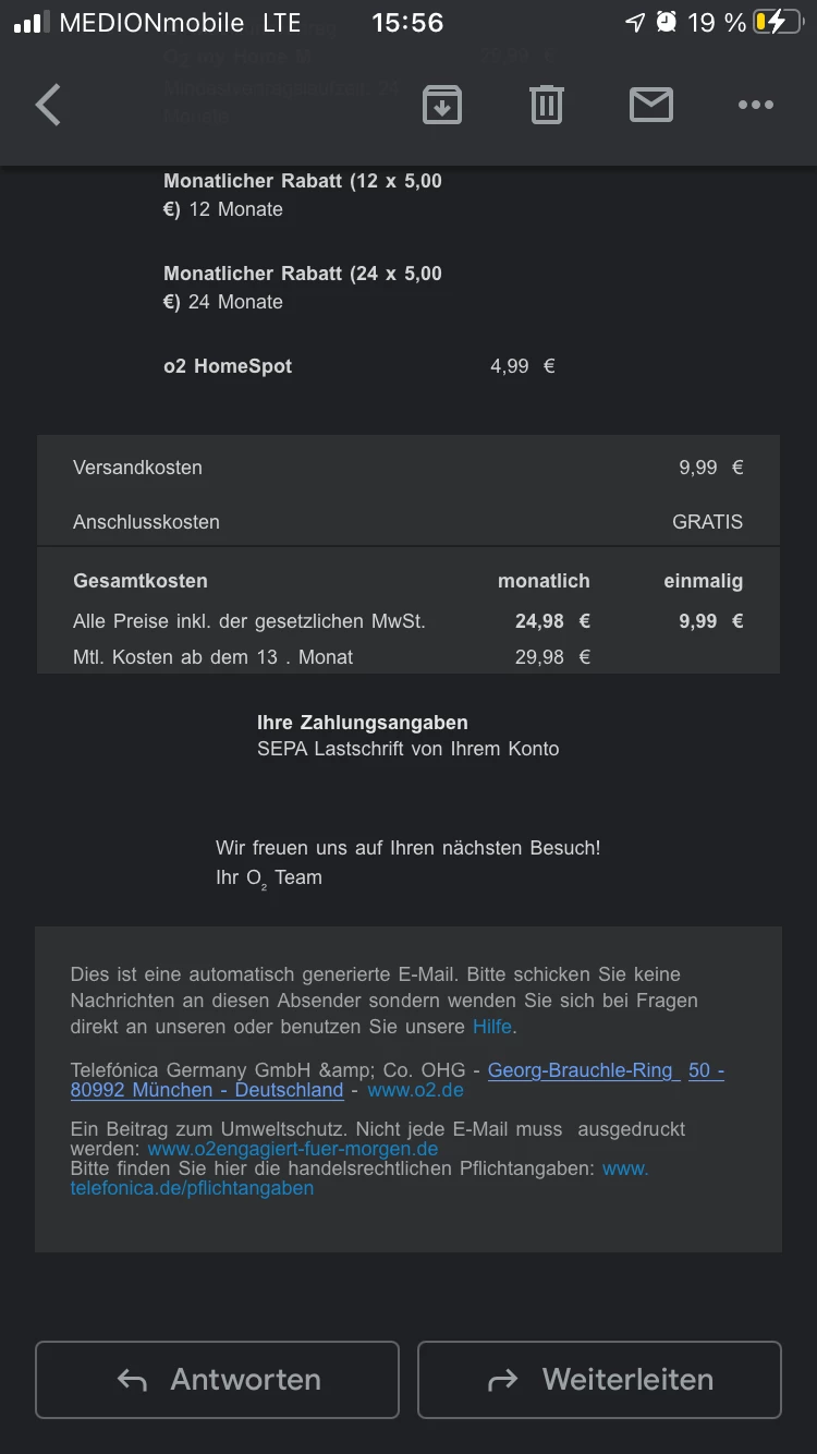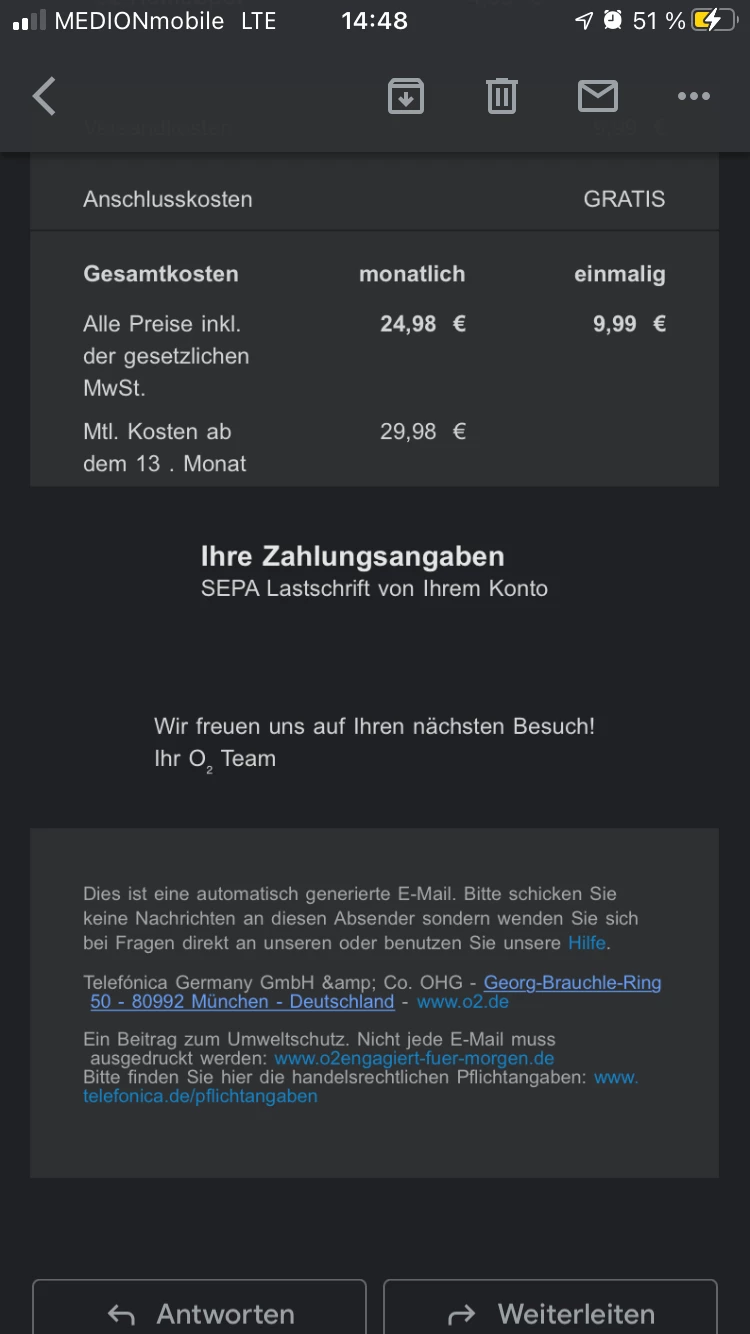 kann es sein, das du 2Verträge abgeschlossen hast? In deinen Screenshots steht Eingang am 04.10. und 06.10. .