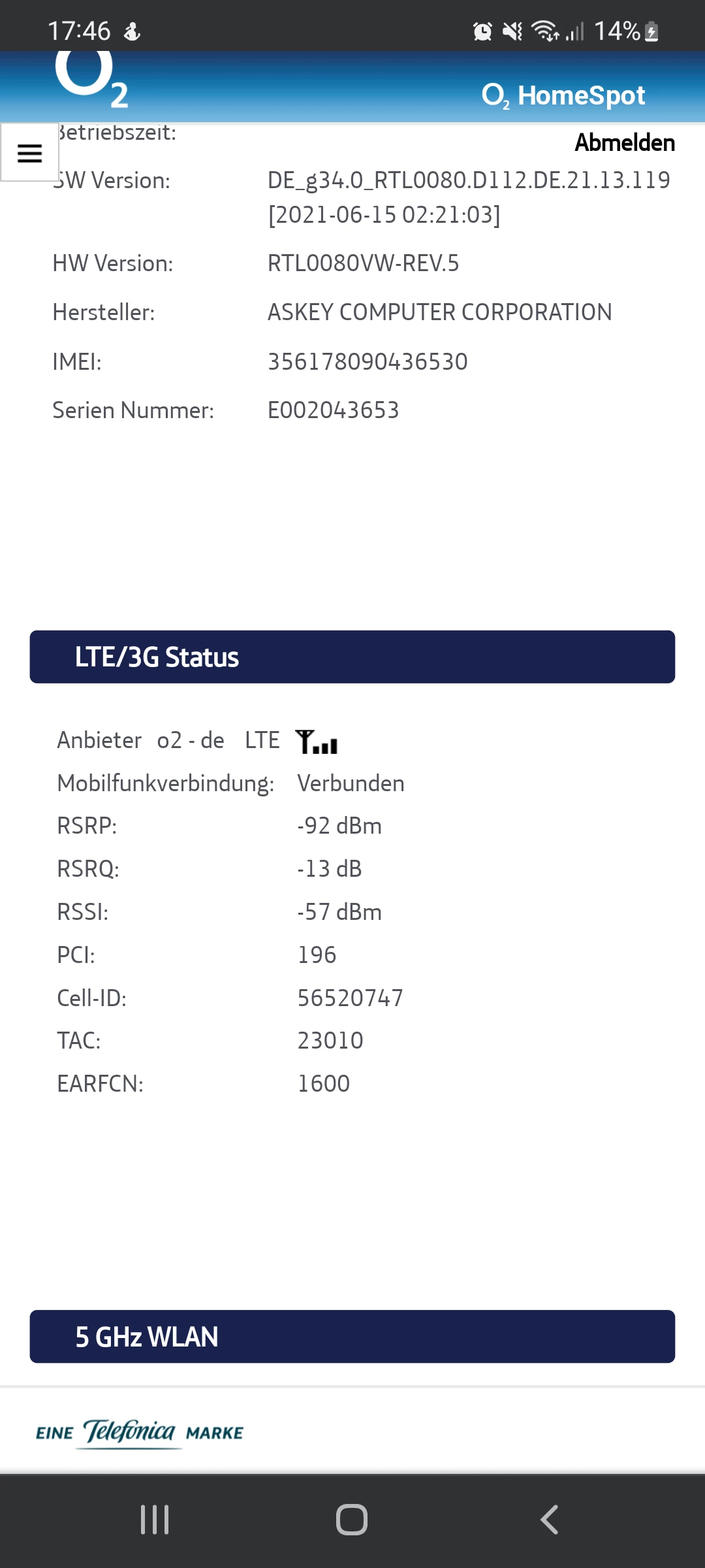 gut, in beiden Fällen ist dein Homespot ist hier mit der eNodeB 220784 verbunden,