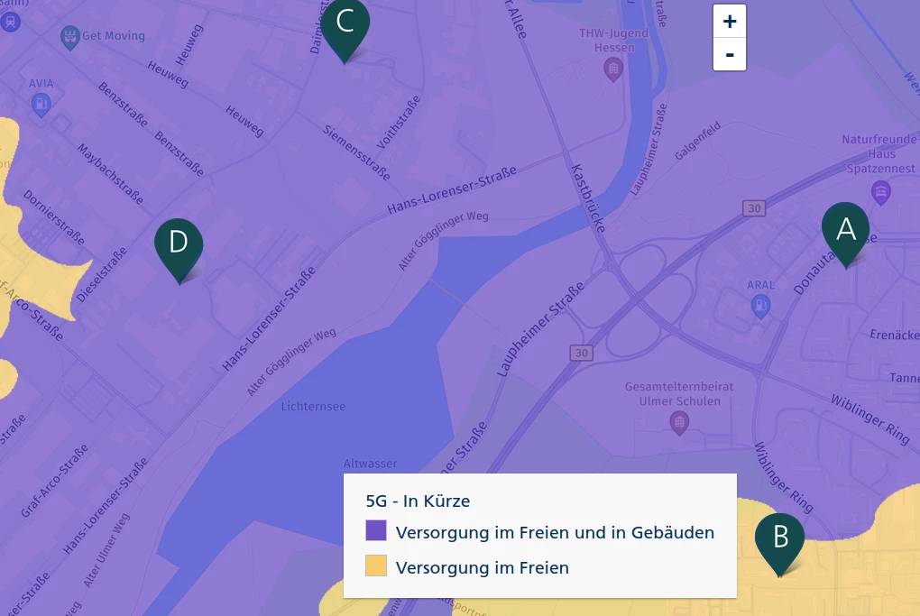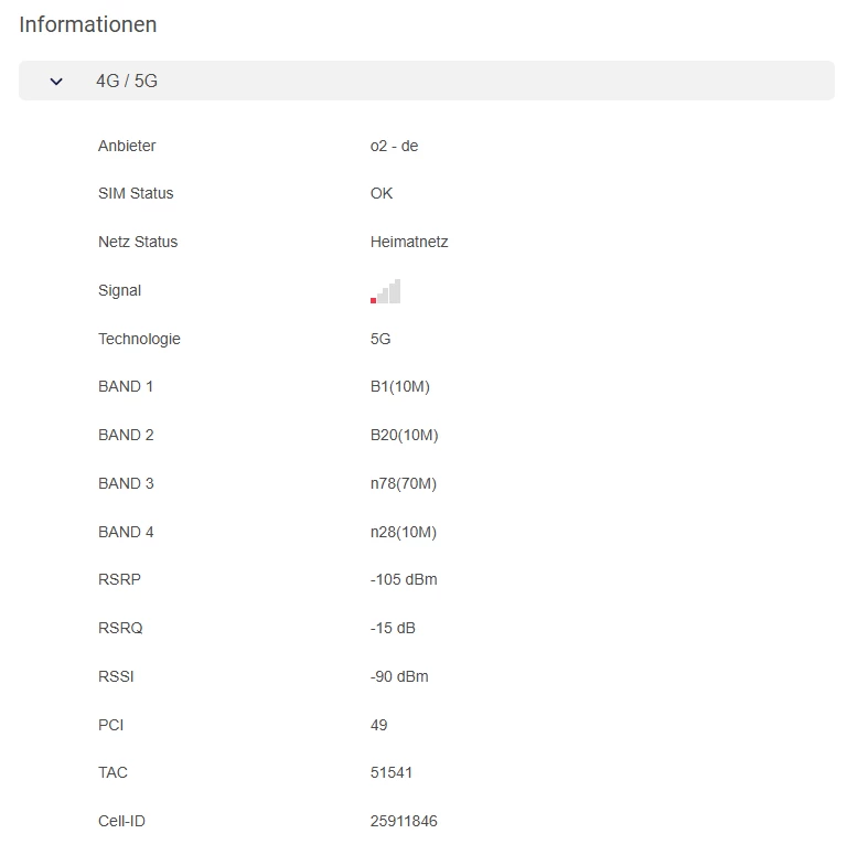 Ansonsten wäre noch eine Postleitzahl/Ort und eine Straße in der Nähe interessant, dann könnte man auch mal schauen wie der 5G Ausbau dort in der Umgebung in etwa ist.