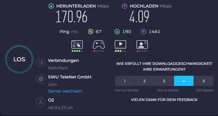 Ich nutze o2 Home 100 seit Juni jetzt ungefähr und ich kann es nicht mehr ertragen dass mein Upload so schlecht ist und die Latenz krank ist, Download ist okay aber Upload sehr enttäuschend. Bei mir in der Wohnung ist nur DSL installiert aber ich habe mich damals als ich umzog für Homespot entschieden, weil 16mbit DSL sehr schlecht für meine Bedürfnisse ist, in der alten Wohnung gab es Kabel und ich hatte 1000 up und down. Was tun?