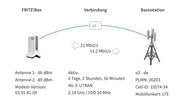ich habe nun schon seit 2 Jahren den O2 my Data Spot Unlimited Tarif mit LTE Max* (bis zu 225 MBit/s). Leider kommen im Router (Homespot oder FritzBox) nur 21 MBit/s an. Neustarts o.ä. bringen nichts. (Siehe Foto)