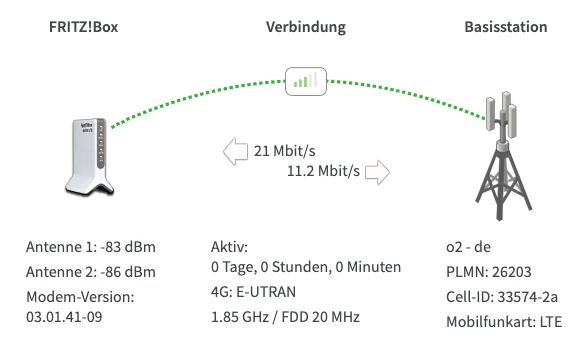 “Handy-SIM-Karte” in der Fitzbox spuckt weiterhin die 21 MBit/s wie auf dem Screenshot raus. Egal welches Band. Google Speedtest spuckt 13 MBit/s down und 4,5 MBits/ up raus. (Test über das Handy, WLAN)