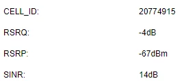 Hier noch die Empfanswerte - wobei der RSRQ unter Volllast bei -10dB liegen kann.