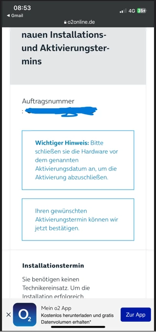 Moin, ich habe ein Internet Vertrag angeschlossen und ich habe das Wunschdatum vor 2-3 Wochen zum 09.05 ausgewählt Dan habe ich paar Tage später die Infos bekommen