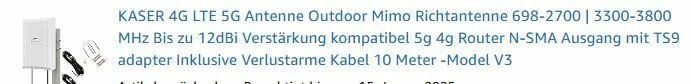 Mit beispielsweise einen dieser Router, wirst du keine Außenantenne mehr anschließen müssen. (der Homespot 5G 2023 würde zwar auch die Möglichkeit zum Anschluss einer Außenantenne bieten, allerdings sind die Anschlüsse einzig für 5G N78 ausgelegt)