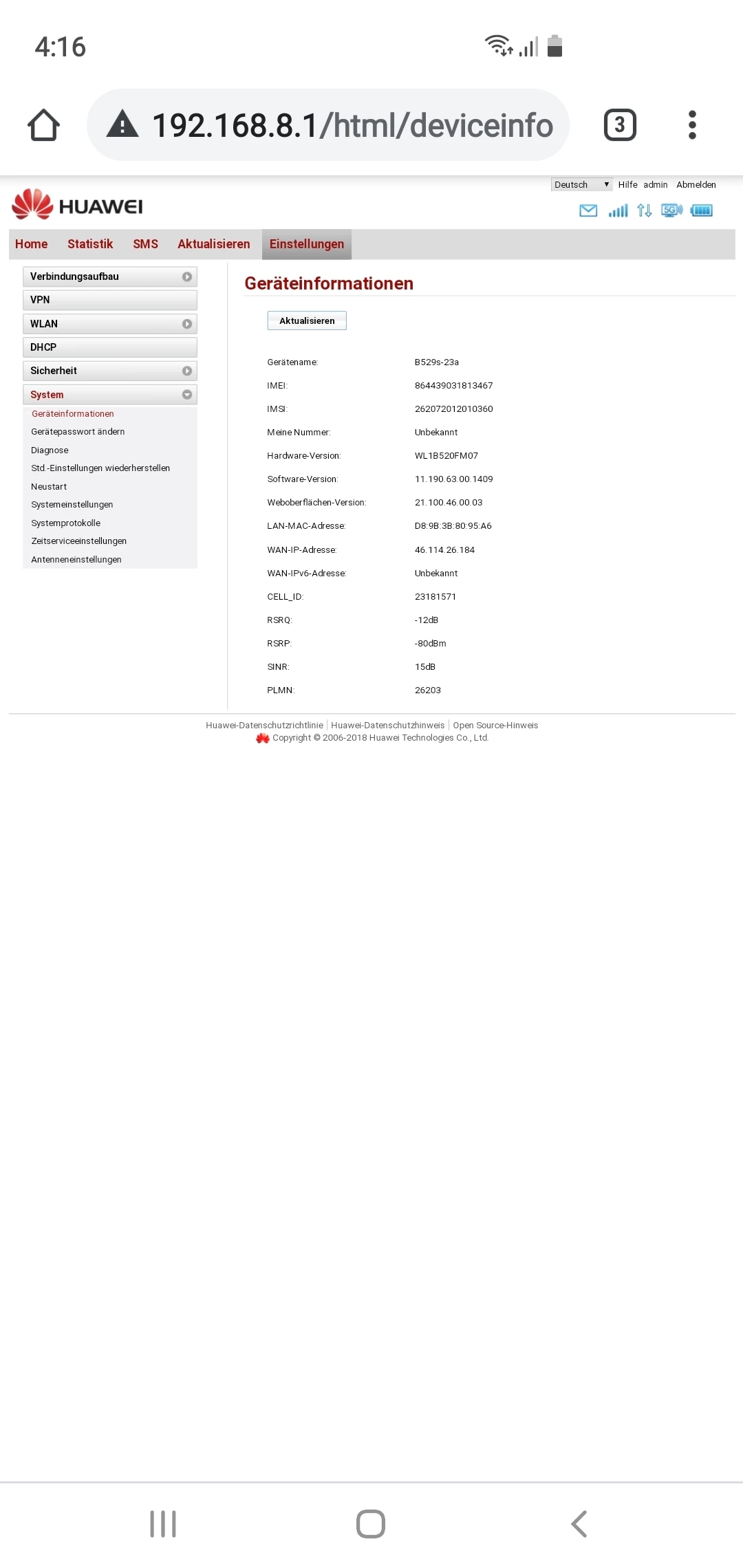 Und magst du vielleicht den “LTE / 3G Status” deines Homespots hier posten?