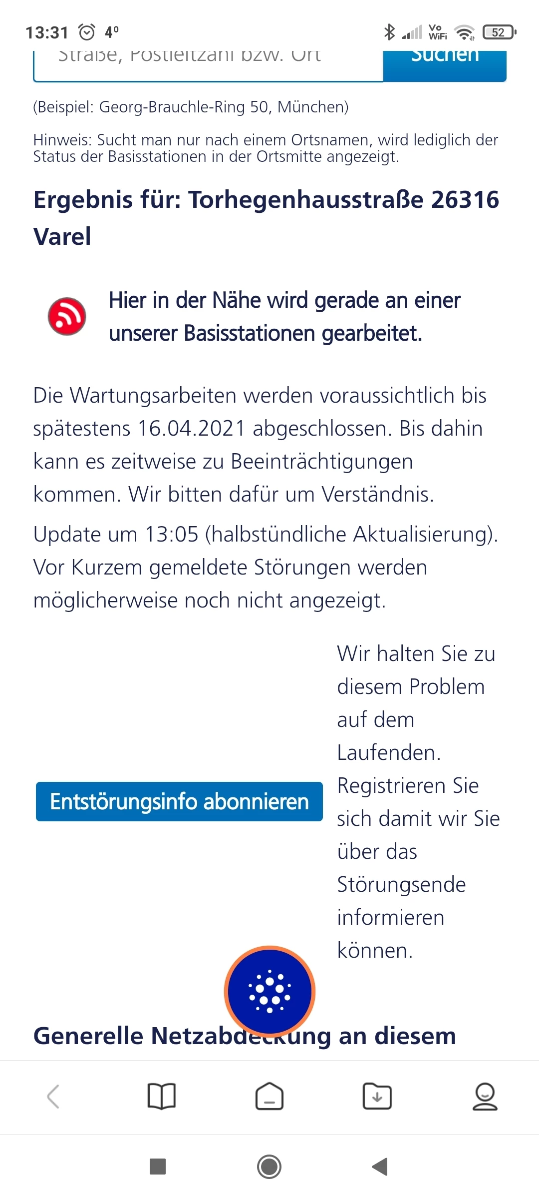 Ich sitze gerade im Garten und habe einen Downloadwert von 52Mbit mit dem Handy. So groß kann die Störung dann ja auch nicht sein oder täusche ich mich da?