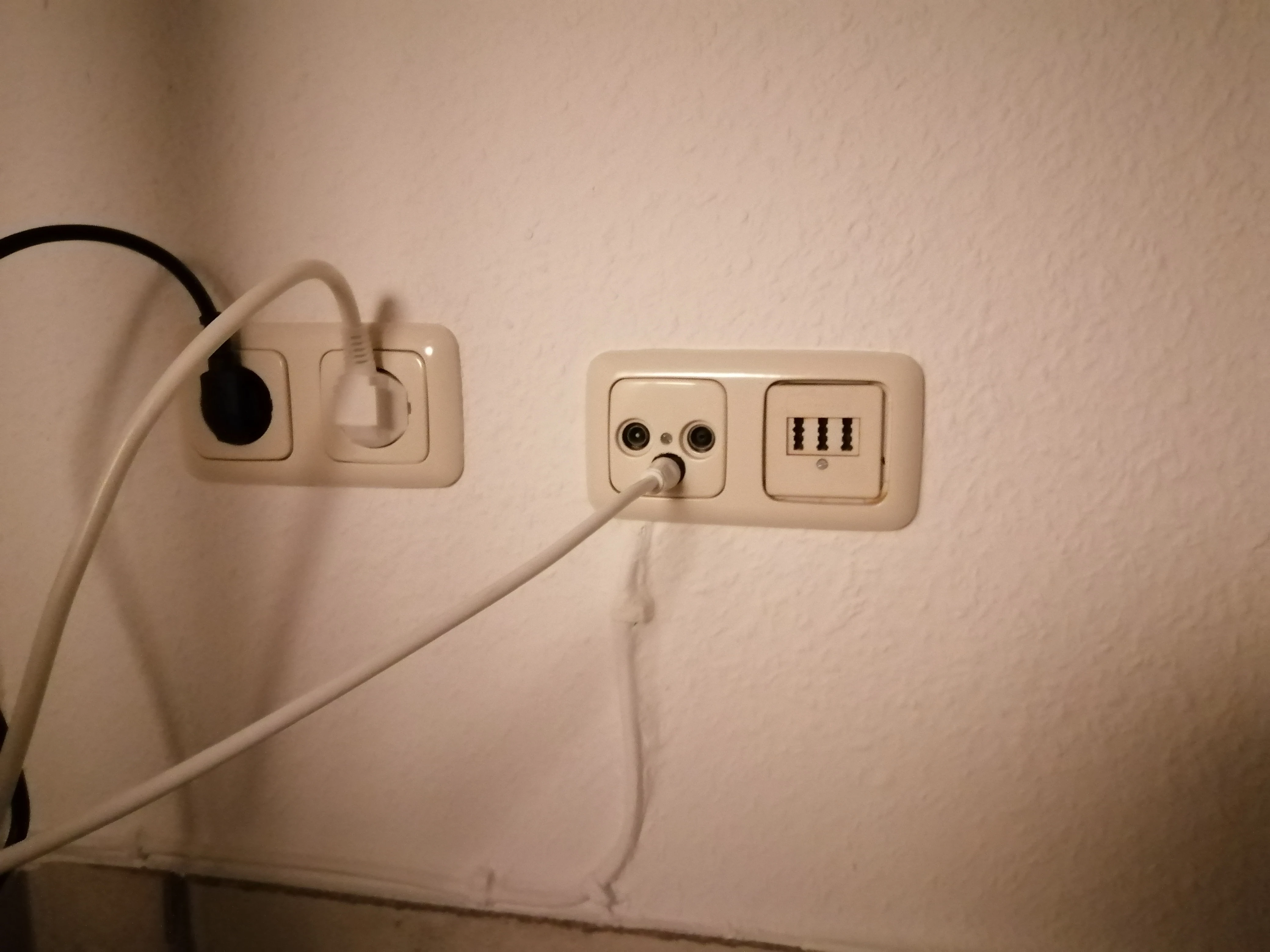 Hallo @Razar13 und Danke fürs Foto. Ich muss gestehen, ich stehe ratlos und nichtsahnend da! Auf dem Foto sieht man zwei Buchsen, einmal TAE (Telefonbuchse) und links daneben EIGENTLICH eine Multimediabuchse, wie man sie bei Kabelverbindungen nutzt. Da ich schlecht sehe, habe ich (ich habe mich erinnert) extra so lange die Steuerungtaste (manche sagen auch String-Taste) gedrückt gehalten und dann entsprechend im Nummernfeld auf das Plus-Zeichen gedrückt, um das Bild zu vergrößern (mitzählen!). Ich bin nicht schlau geworden. Du hast da drei Buchsen. Eine ist für den TV-Empfang (links oder rechts) und die andere für den Radio-Empfang. Die dritte Buchse wiederum, also die in der Mitte unten, sollte eigentlich eine sogenannte Multimediabuchse sein, die man wie bereits erwähnt, bei Kabelverbindungen einsetzt. Ich sehe jedoch nur einen normalenTV/Radio-Stecker auf dem Bild, es sollte aber eine F-Steckerverbindung sein, also mit Schraubgewinde.