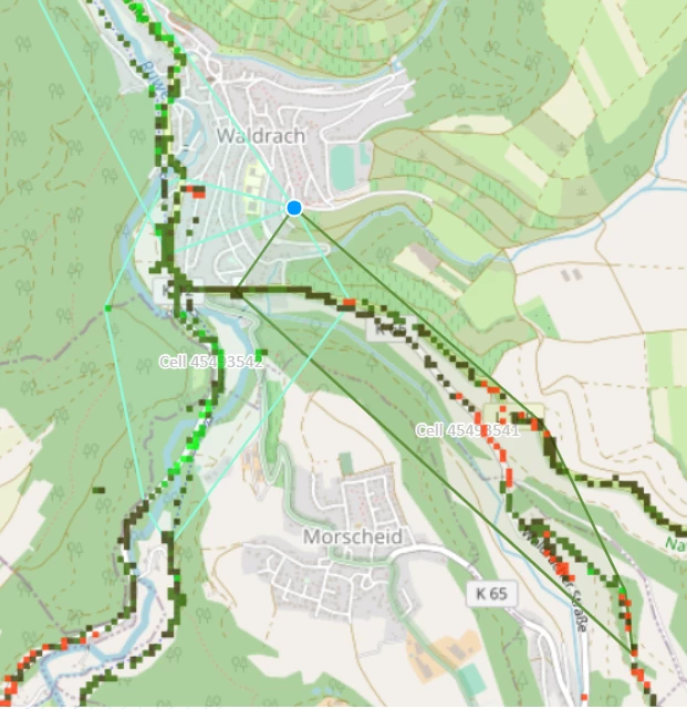 Zellen tauchen nur dann (vollständig in der Karte) auf, wenn ein Nutzer der Android-App, mit aktiver Zellaufzeichnung in deiner Umgebung unterwegs war. Die Station in Waldrach hat zuletzt am 31. Oktober ein Nutzer “gemappt”, in Morscheid sich scheint bislang noch kein Nutzer “verirrt” zu haben. :blush: