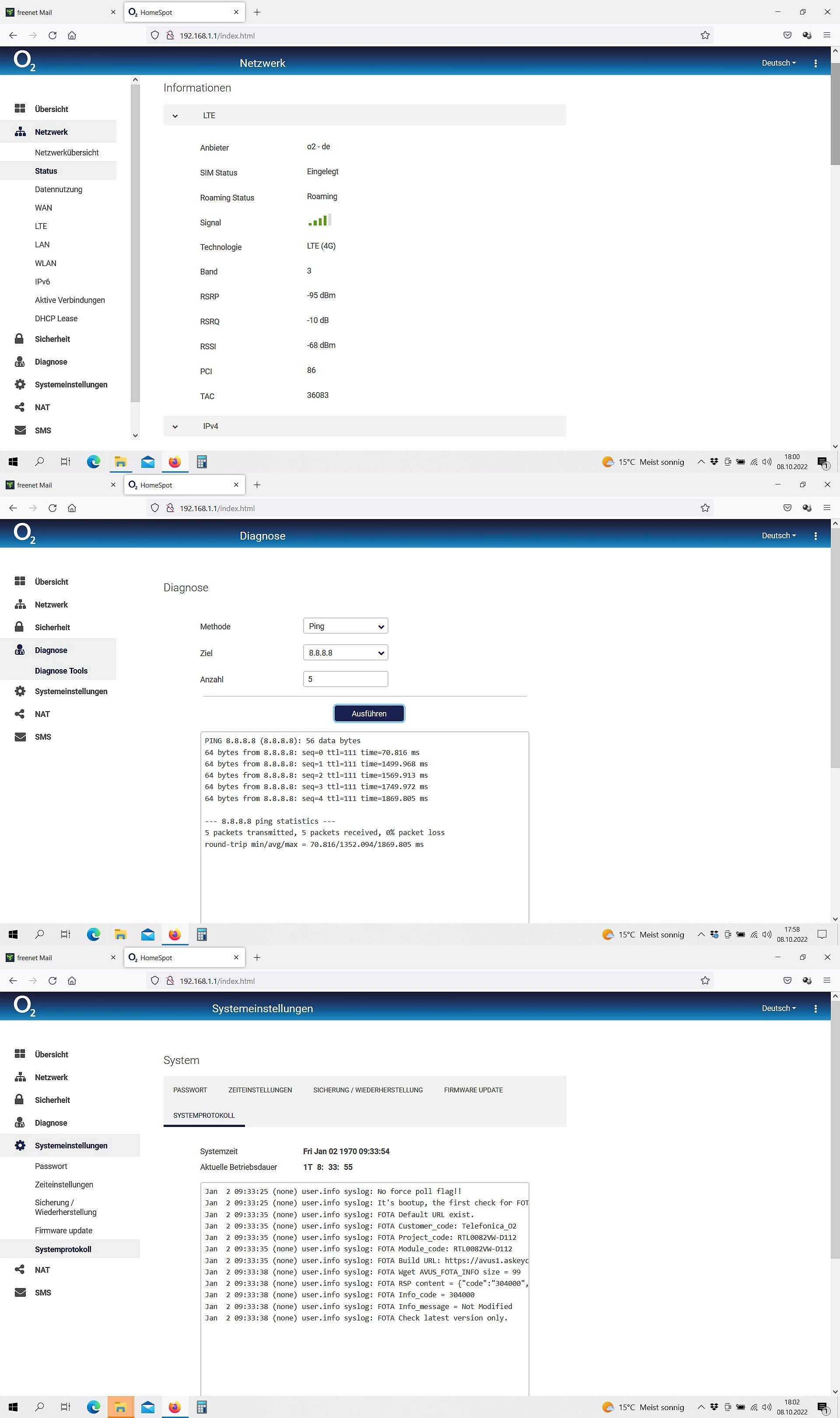 besten Dank, ich bin mit WLAN am Homespot 2 hier die Daten zur Info, irgendwie sind die Daten vom 2. Januar 1970 :-)