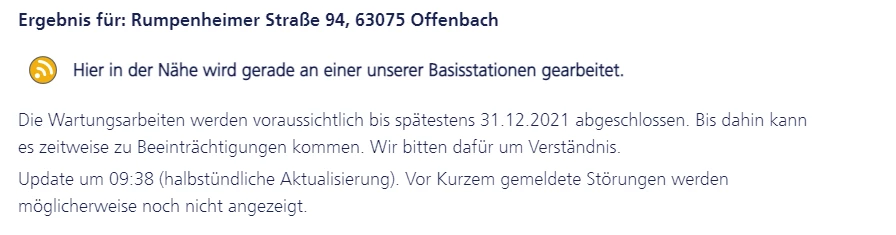Wie tearsbeforecrying richtig geschrieben hat, liegt vor Ort eine Netzstörung vor.