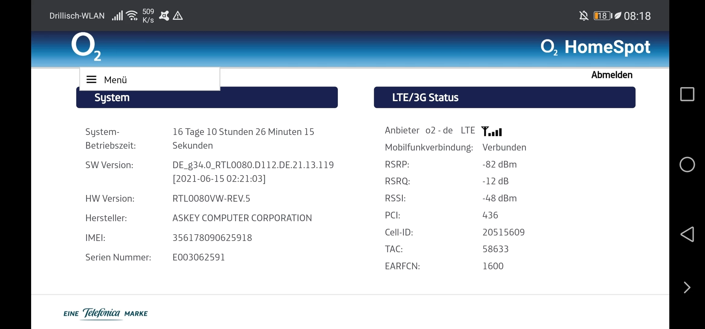 magst du denn mal den “LTE / 3G Status” deines Homespots hier posten?