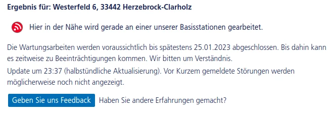 Wenn ich mir die genannte Station anschaue, dann liegt nun keine Einschränkung mehr vor. Wie sieht es bei deiner Verbindung aus? Hat sich diese inzwischen ebenfalls wieder stabilisiert?