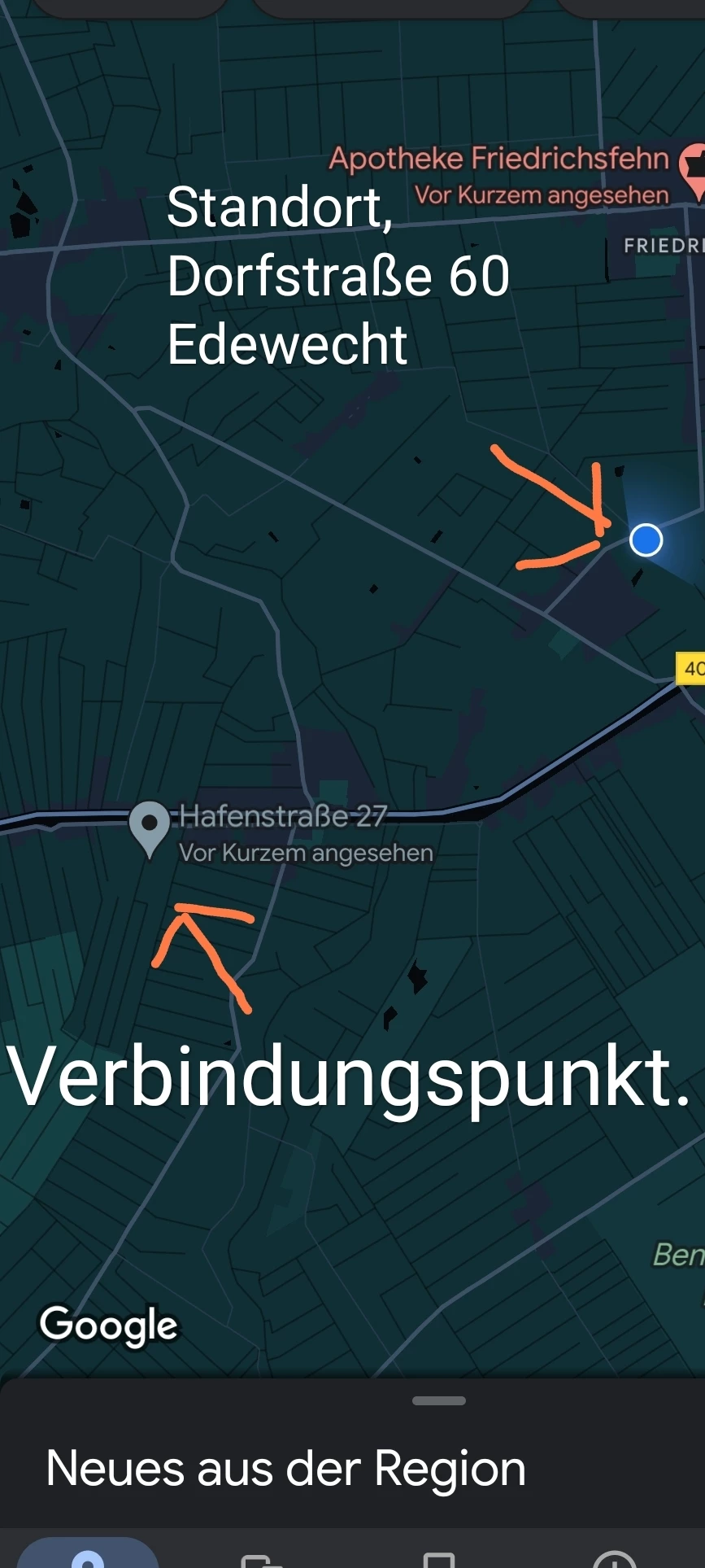 Also mein Router steht am Fenster Richtung Scharreler Damm und ist im 1.OG . Sicht Kontakt habe ich nicht zur Hafenstraße die auch ein gutes Stück entfernt ist. Antenne und Standort packe ich Mal an Anhang dabei.