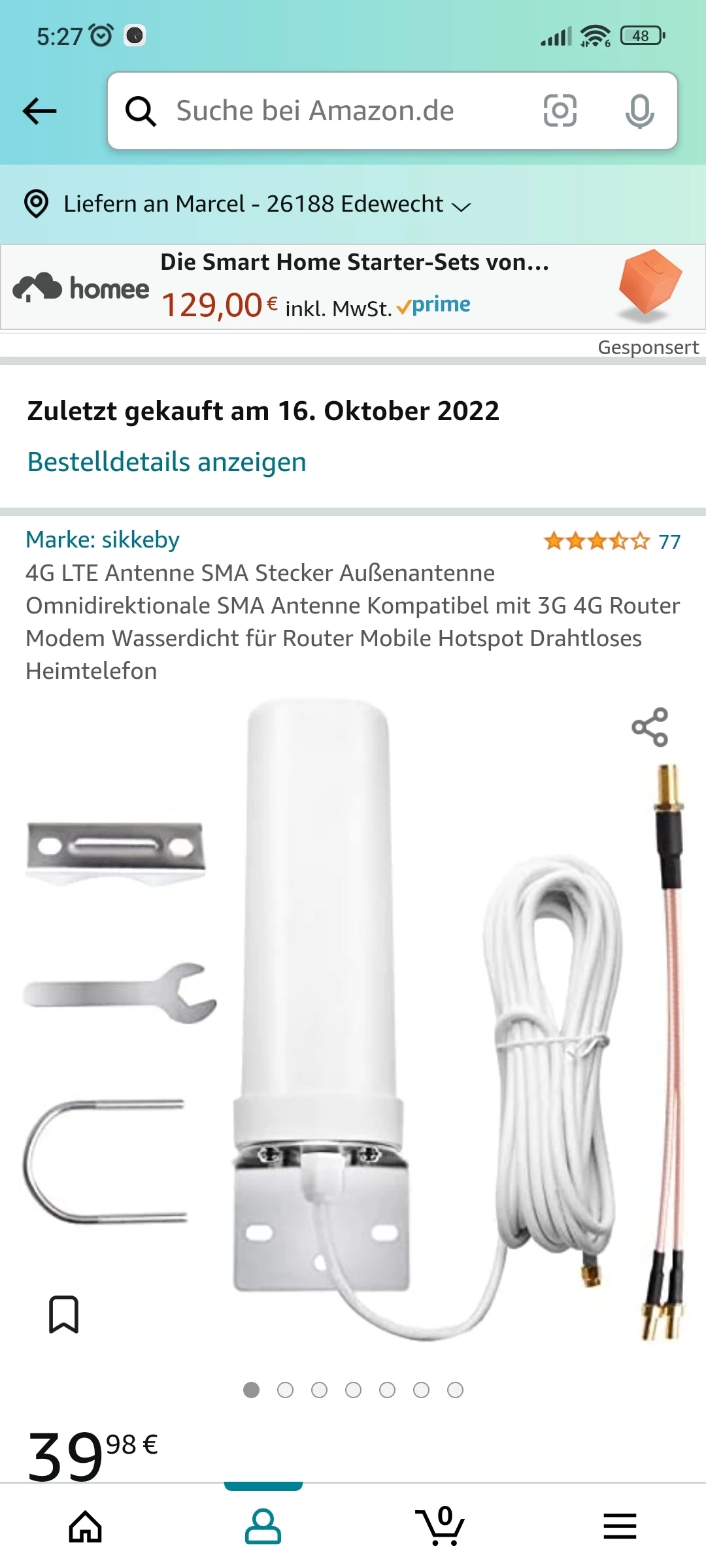 Hat dein Homespot denn Sichtkontakt zur Basisstation in der Hafenstraße? Also steht dieser bereits direkt an einen Fenster (auf einen Fensterbrett), möglichst hoch im Gebäude?