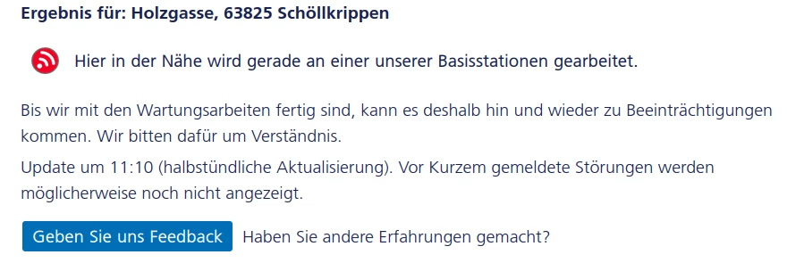 Hat denn dein Homespot Sichtkontakt zur Station “Holzgasse, 63825 Schöllkrippen”? Oder kannst du diesen mal an ein Fenster stellen, in Richtung der Station?