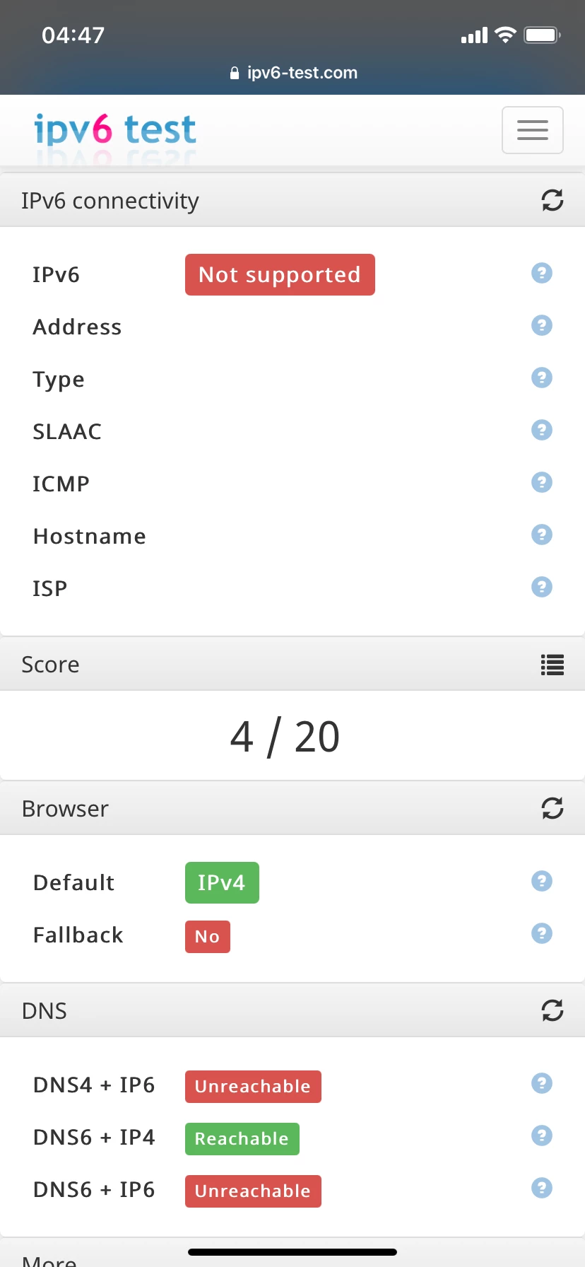 Das hätte in Deinem Fall z. B. bedeutet, dass Du IPv6 hast, der APN aber auf Netpublic steht, was wohl nicht geht/gehen würde...