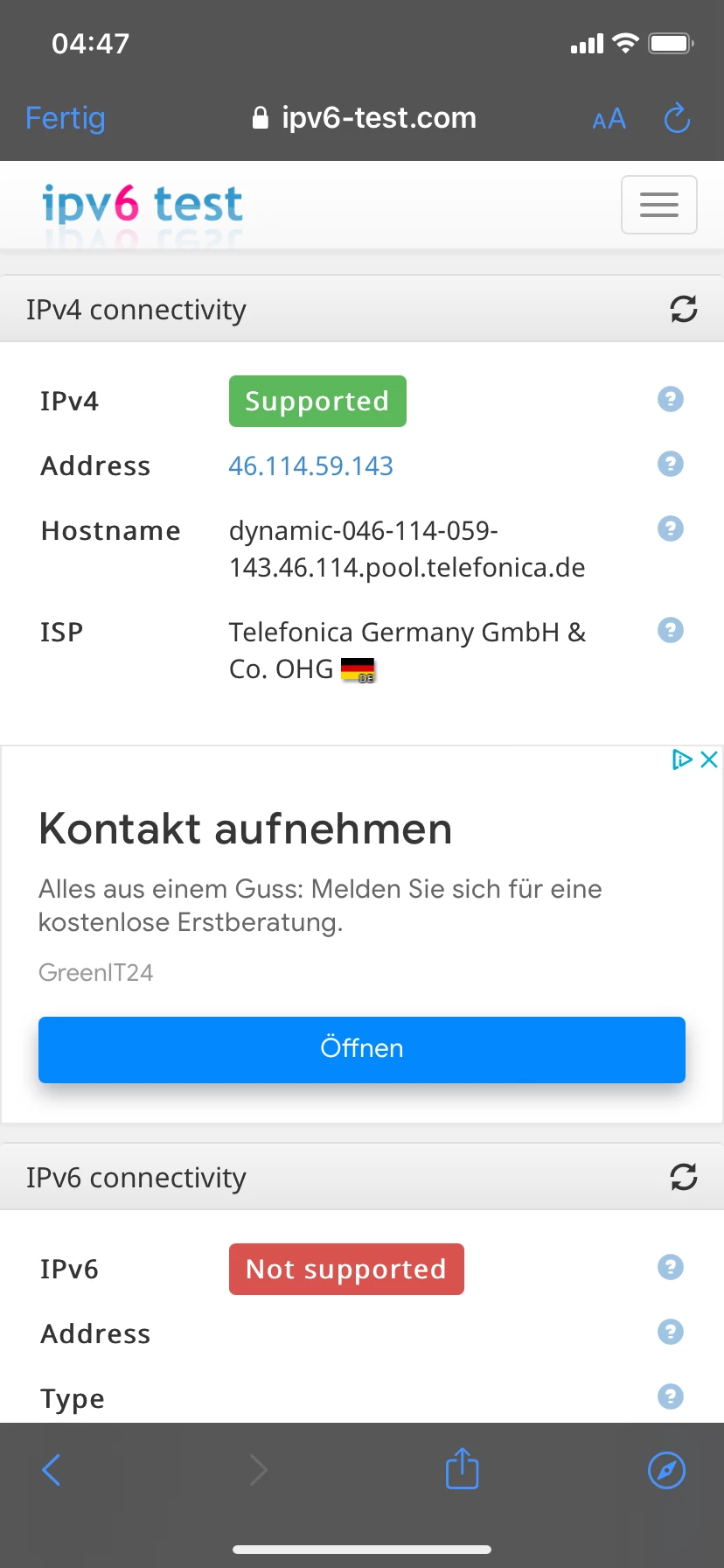 Moin, sorry dass ich mich so unklar ausgedrückt habe. Also ich besitze ein tp link Router und habe eine öffentliche ip. Es hat bisher auch alles gut geklappt, doch seit gestern nicht mehr. Vielleicht ist es ja nur vorübergehend. Werde später nochmal nachschauen. Habe die o2 Hotline schon angerufen, die meinen die Technik würde sich melden, aber ein Ticket habe ich bisher noch nicht bekommen. Ich habe die es mal über ein Hotspot mit meinem iPhone probiert. Anbieter Vodafone, da hat es gut geklappt.