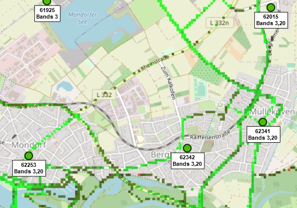 Benachbarte Masten wären (auch wenn nicht alle deinen Wohnort abdecken sollten): Müllekoven, nördlich von Müllekoven, Mondorfer See, Mondorf