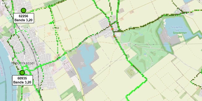 Grundsätzlich bist Du mit der Funkzelle in Bergheim (eNB ID 62342) verbunden. Auffällig ist, dass die Funkzellen aus Mondorf und Müllekoven auch auf den Bändern 3 und 20 senden. Nach meiner Erfahrung, auch wenn ich den Homespot nicht kenne, sucht der Homespot den bestmöglichen Kontakt und hierbei nimmt er Band 20 als BackBone oder Ankerband! Meiner Meinung nach (ich kalkuliere mal, Du wohnst im Grenzgebiet zwischen Bergheim und Müllekoven) kann es durchaus sein, dass es durch durchaus wetterbedingte Störungen oder Interferenzen passieren kann, dass der Homespot eigenständig die Funkzelle wechselt, um dann festzustellen, dass diese doch nicht so dolle ist!