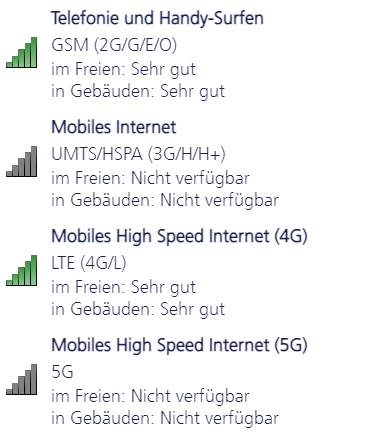 Es ist nämlich entgegen der Anzeige, weder 2G noch 4G nutzbar an meinem Standort.