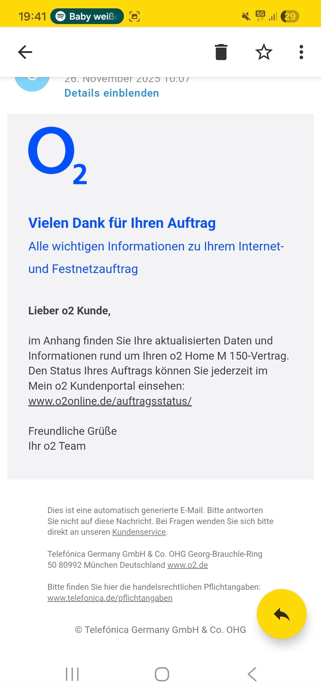 Eben kam nun eine Mail die einen zweiten Glasfaserauftrag mit neuer Auftragsnummer bestätigt hat, allerdings liest es sich so als ob man nun erstmal klären müsste wann die Leitung verlegt wird. Hier als Randbemerkung, das Haus wurde schon vor über 9 Monaten an das Netz angeschlossen.
