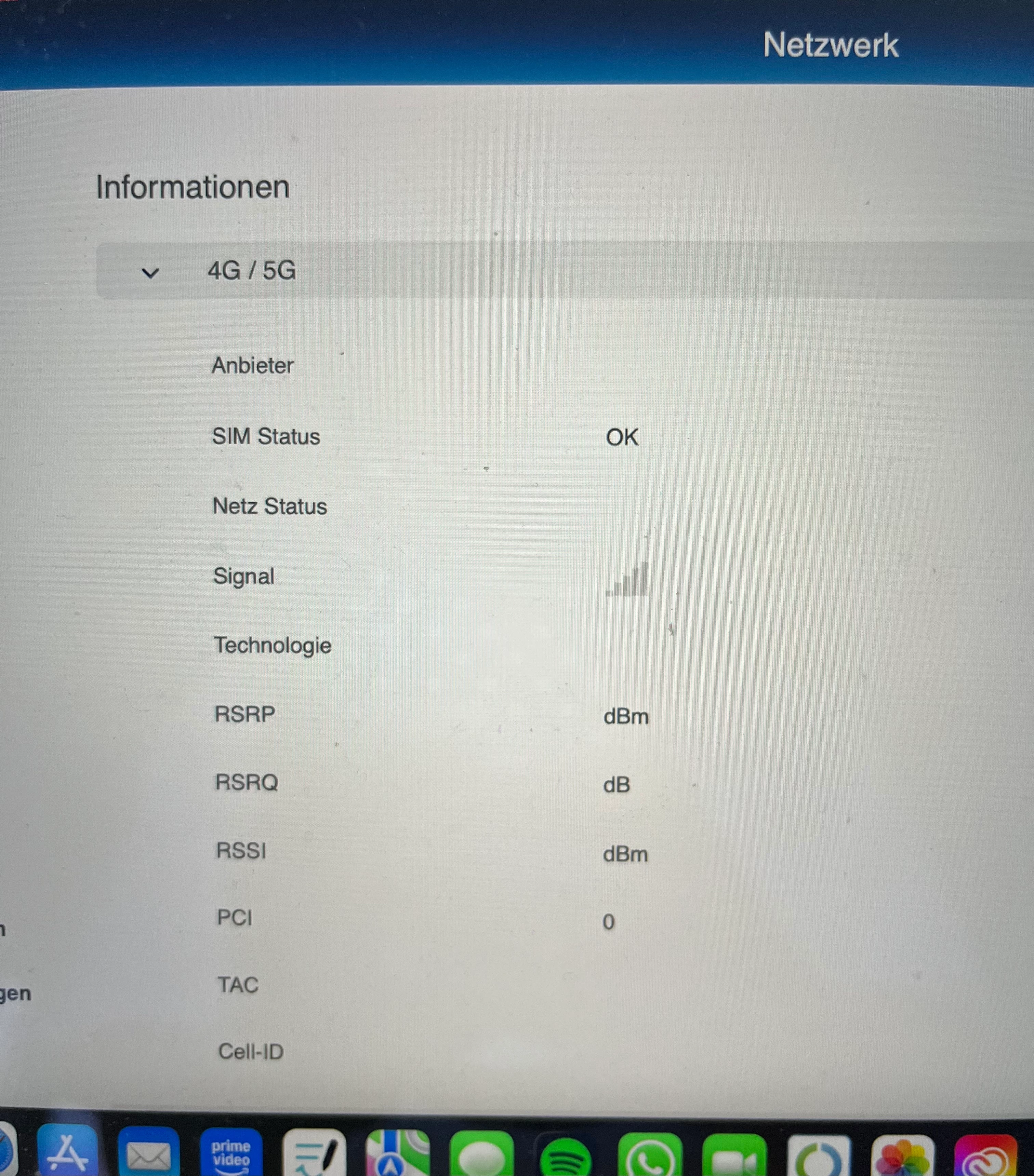 Wenn die LTE/5G-LED rot leuchtet, kann es auch sein, dass die Aktivierung der SIM-Karte noch nicht abgeschlossen ist. Hast du die Möglichkeit, sie in einem Handy zu testen? Dort kannst du ebenfalls die PIN-Abfrage ausschalten.