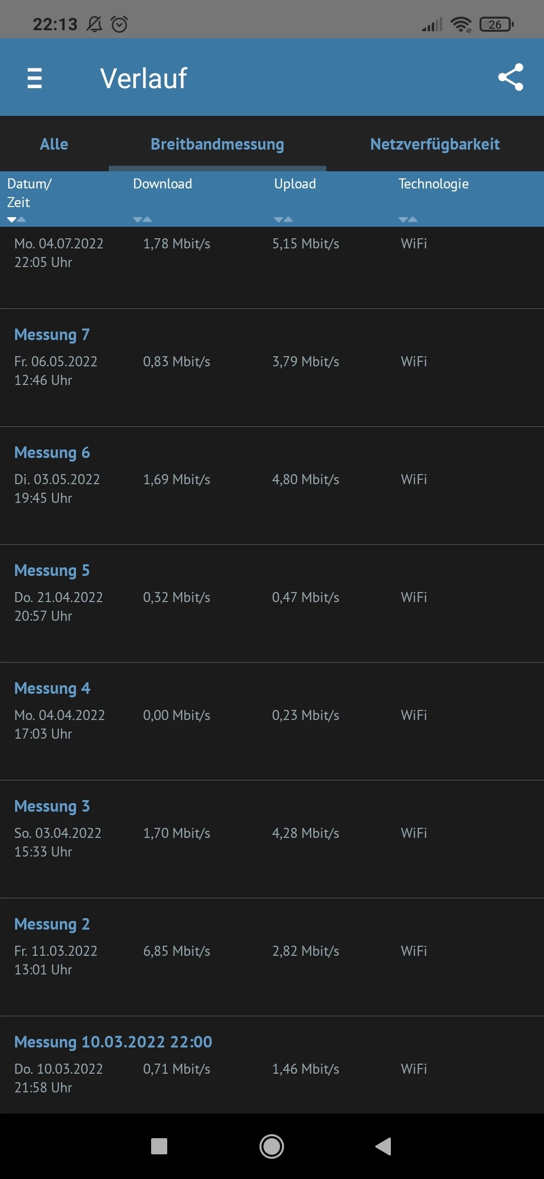 Ich habe per Breitbandmessungs-App seit Monaten bisschen gemessen um zu schauen ob es einfach nur schwankt oder komplett nicht funktioniert: