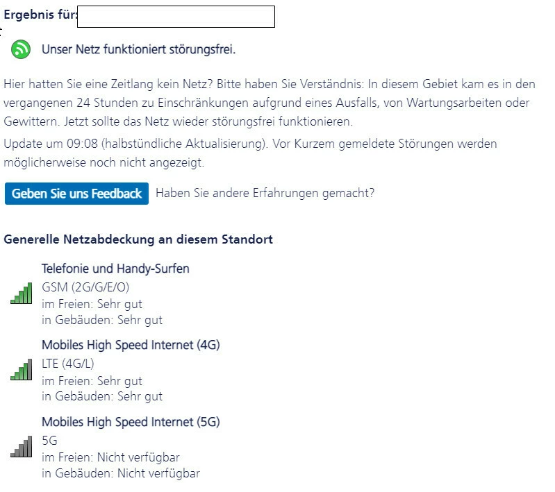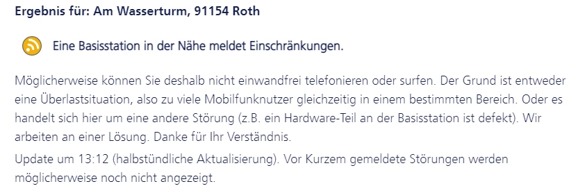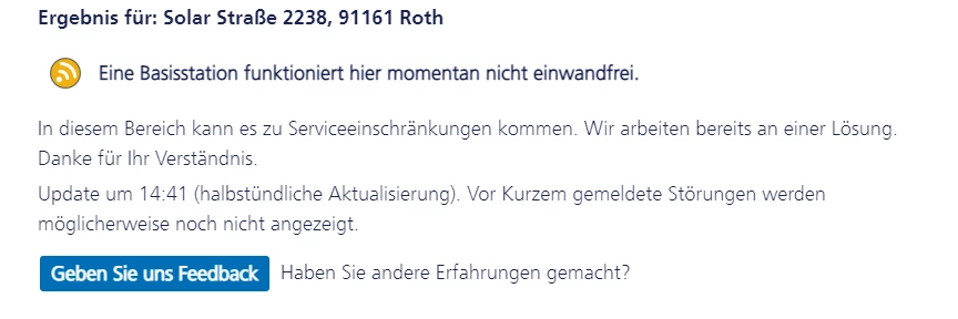 Dort ist eine Störung gemeldet: