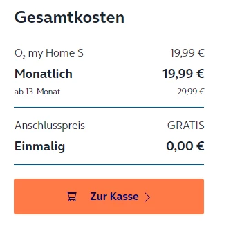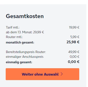 Schritt 1 (Optionsauswahl mit z.B. o2TV): Routerkosten werden angezeigt