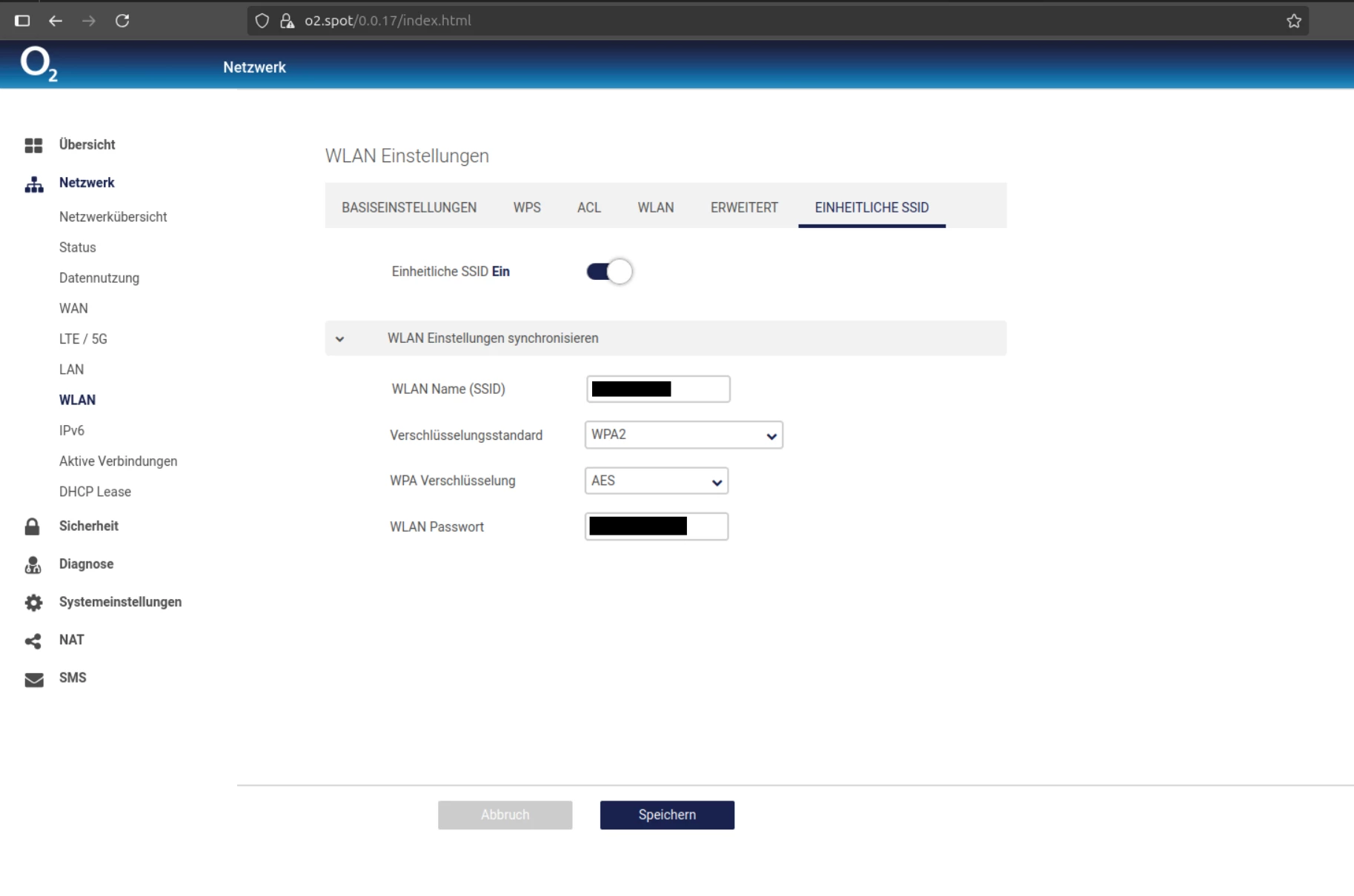 danke für die Antwort. Genau das hatte ich, wie gesagt, schon probiert und es funktioniert mit obiger Fehlermeldung nicht. Auch nach mehrmaligem versuchen bleiben SSID und Passwort unter Netzwerk → Basiseinstellungen ausgegraut und nicht veränderbar.