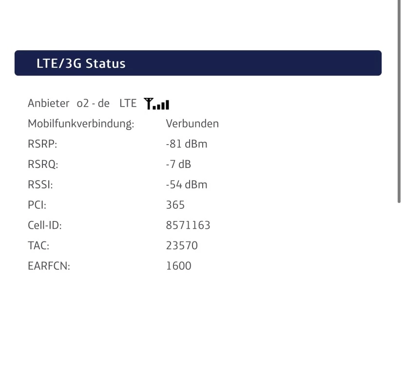 Anbei schicke ich noch einmal meinen LTE/3G Status