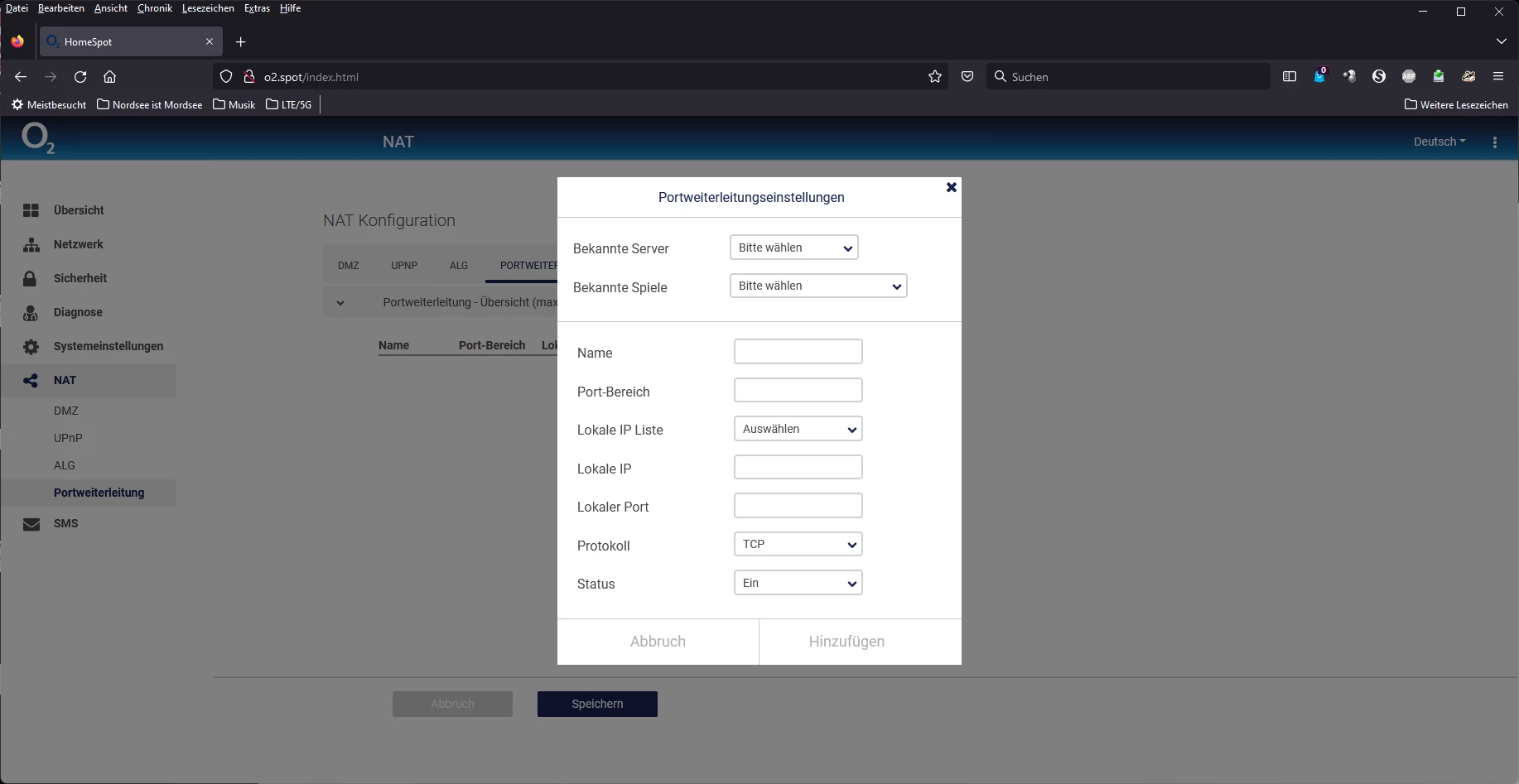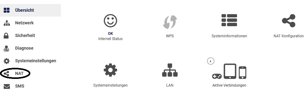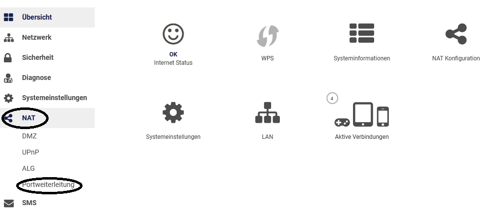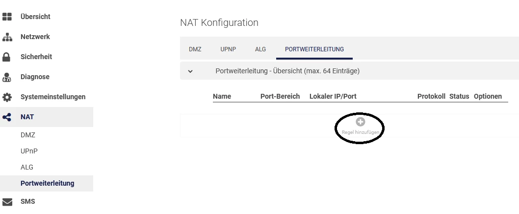 Wieder auf NAT klicken und dann auf Portweiterleitung.