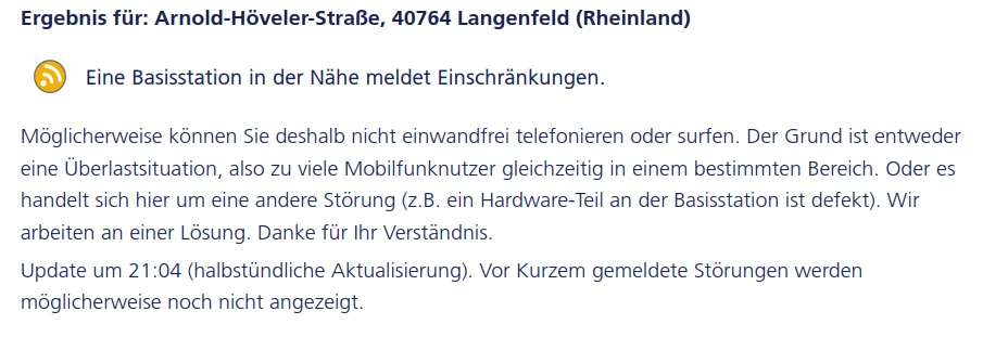 Tom_ hat es schon gut vorgemacht. :thumbsup: Du kannst für jede Adresse in Deutschland einen Live Check machen und dabei herausfinden ob eine Störung schon bekannt ist.
