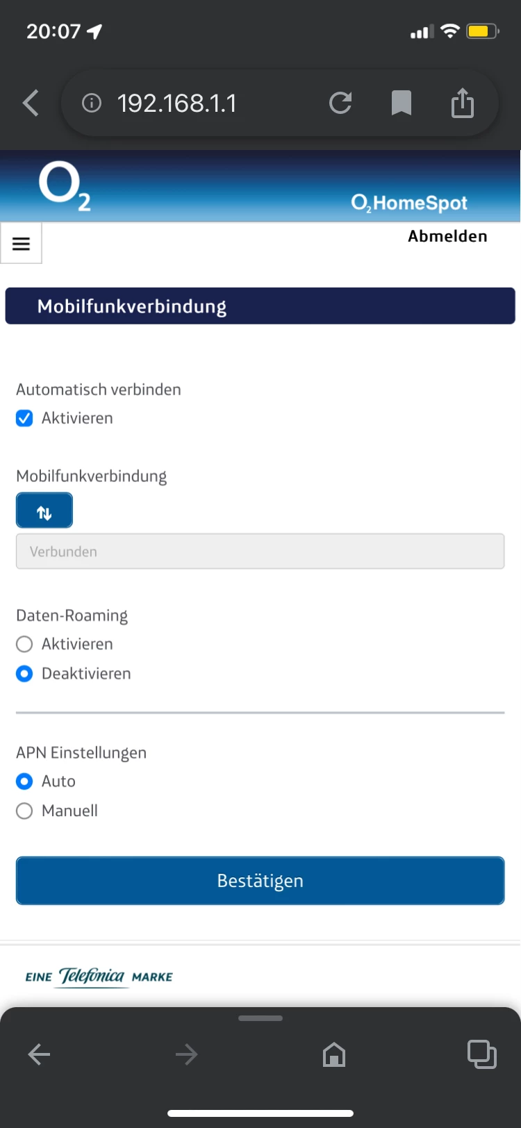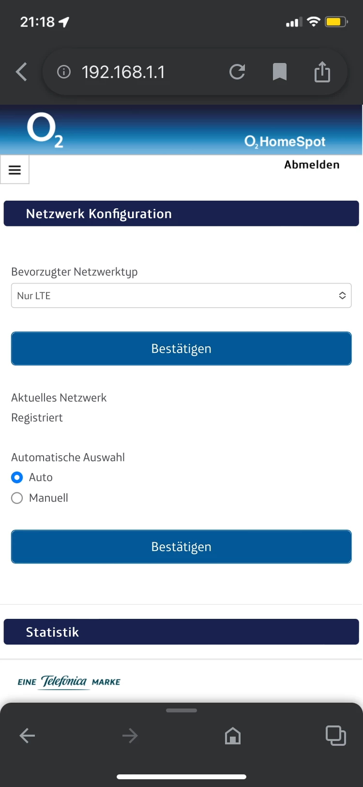 Tja, leider liegt es auch nicht daran. Habe gestern auf LTE umgestellt. Heute morgen bevor ich das Haus verlassen habe, war alles noch ok. Jetzt musste ich das Teil wieder neu starten.