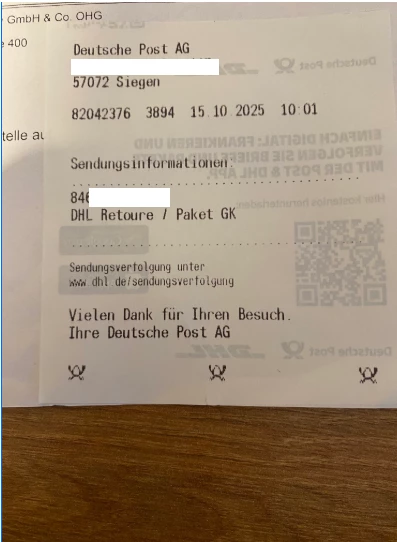 gehe bitte über das Kontaktformular und hänge nochmals die Sendungsbelege an.