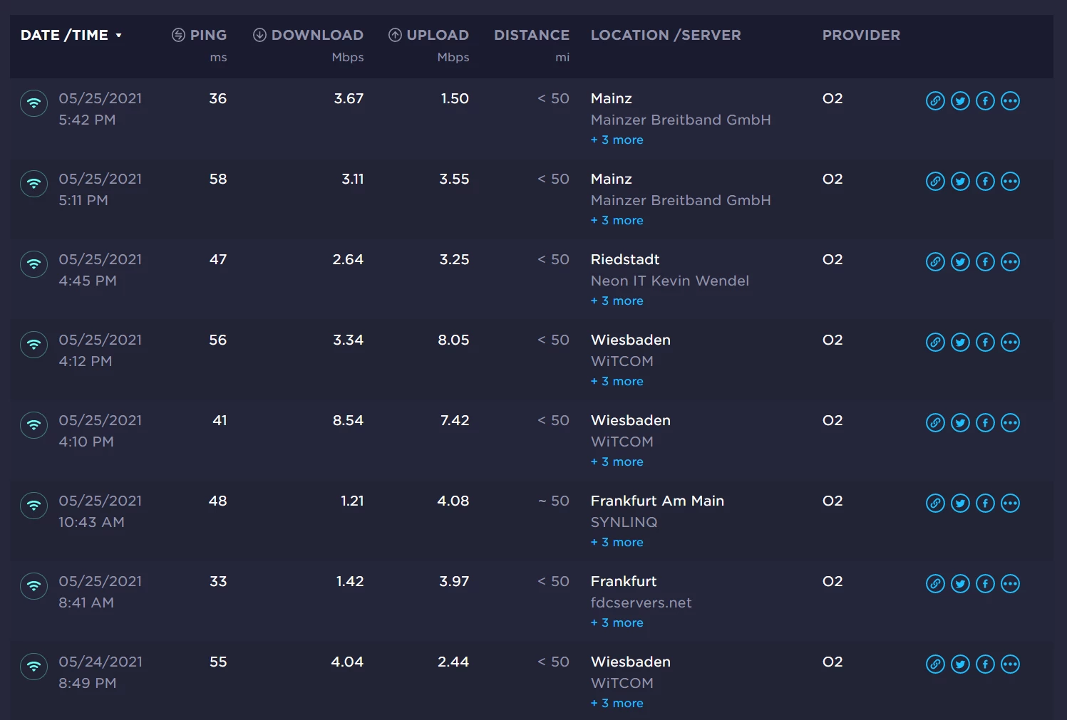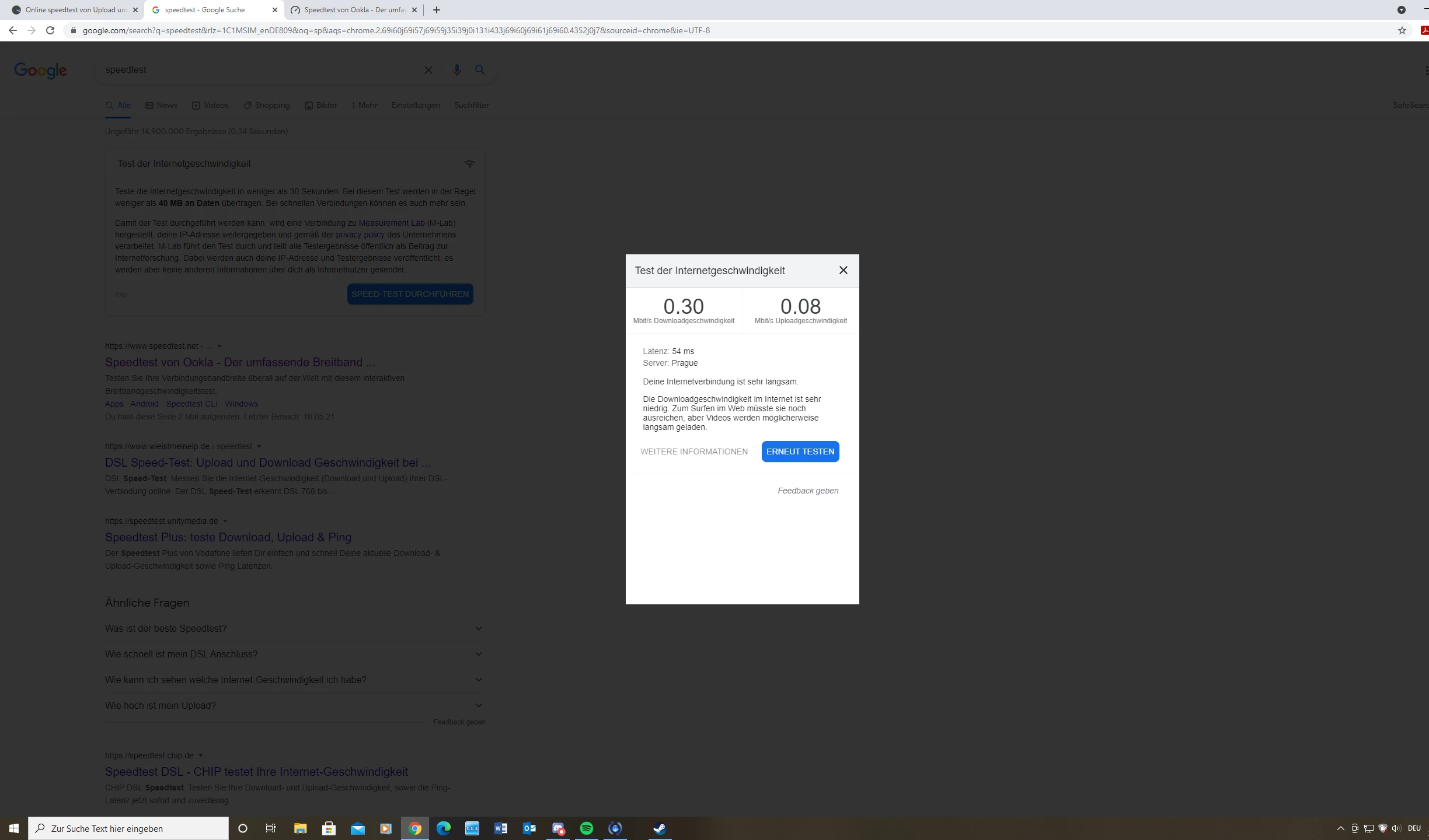 Internetgeschwindigkeit seit wochen langsam und instabil Homespot 50Mbit/s
