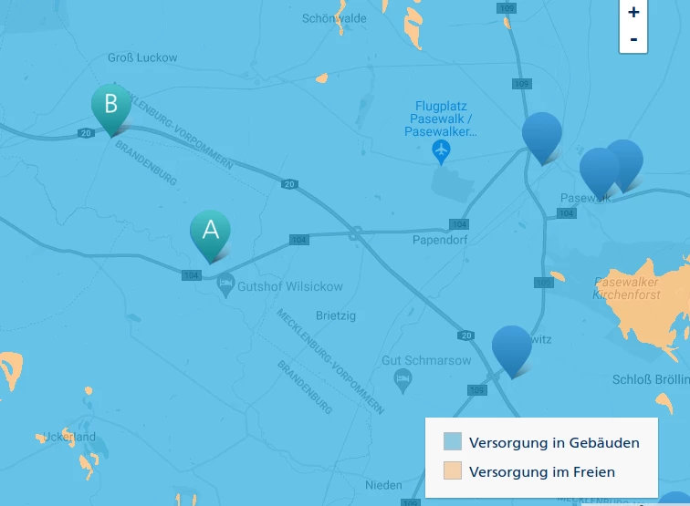 Der Livecheck meldet in diesen Bereich leider gerade eine Einschränkung. :disappointed_relieved:  Ich vermute, dass die Basisstation bei “B” gerade Probleme macht, und du daher mit der (weiter entfernten?) Station “A” verbunden bist.