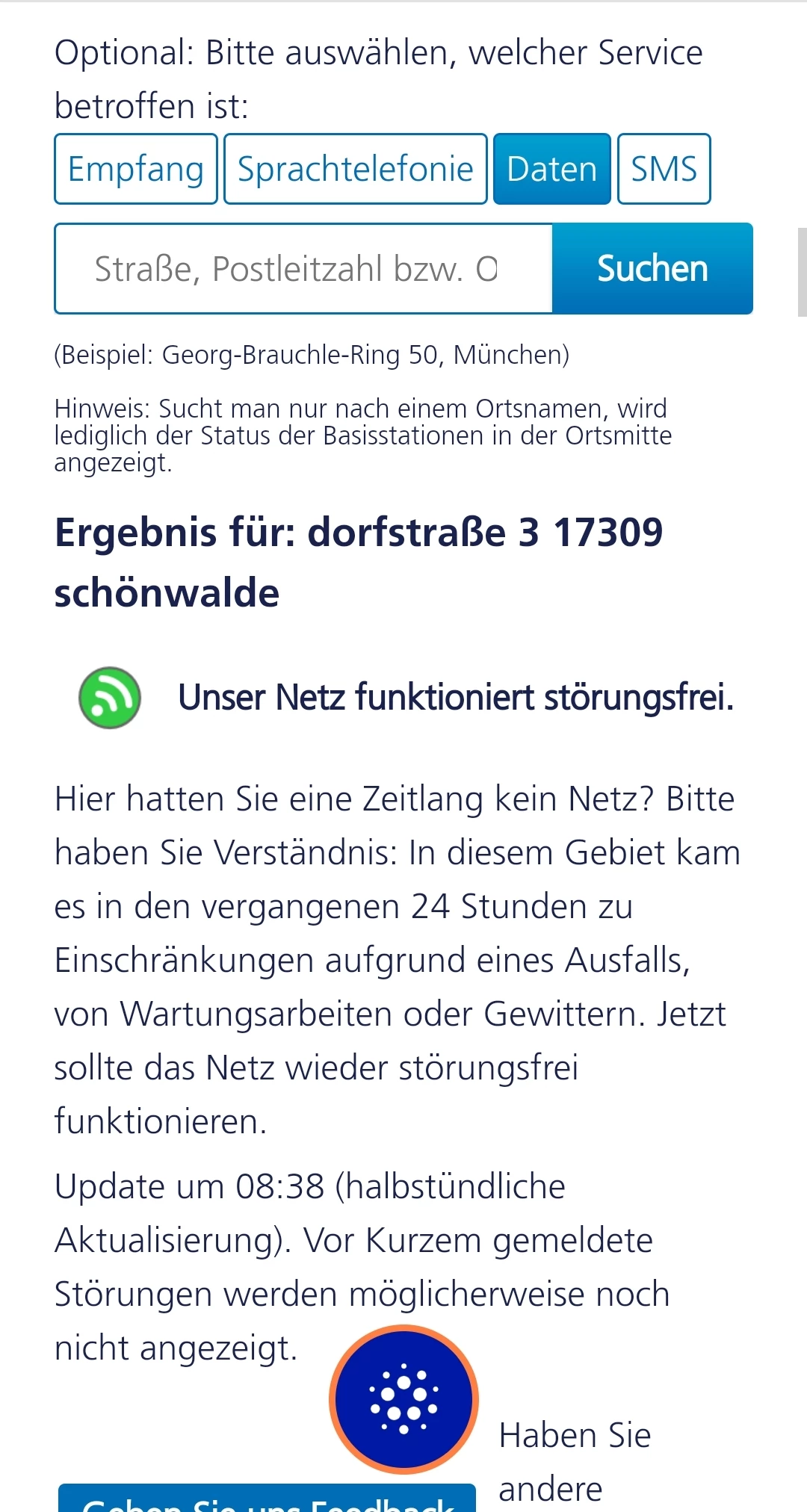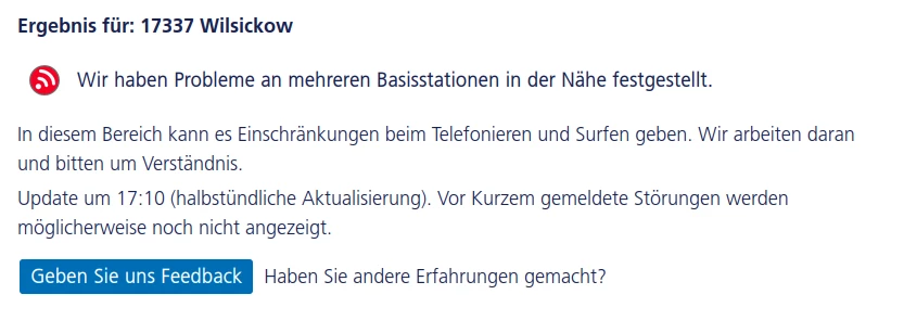 Du kannst die Abfrage selber hier vornehmen: https://www.o2online.de/netz/netzstoerung/