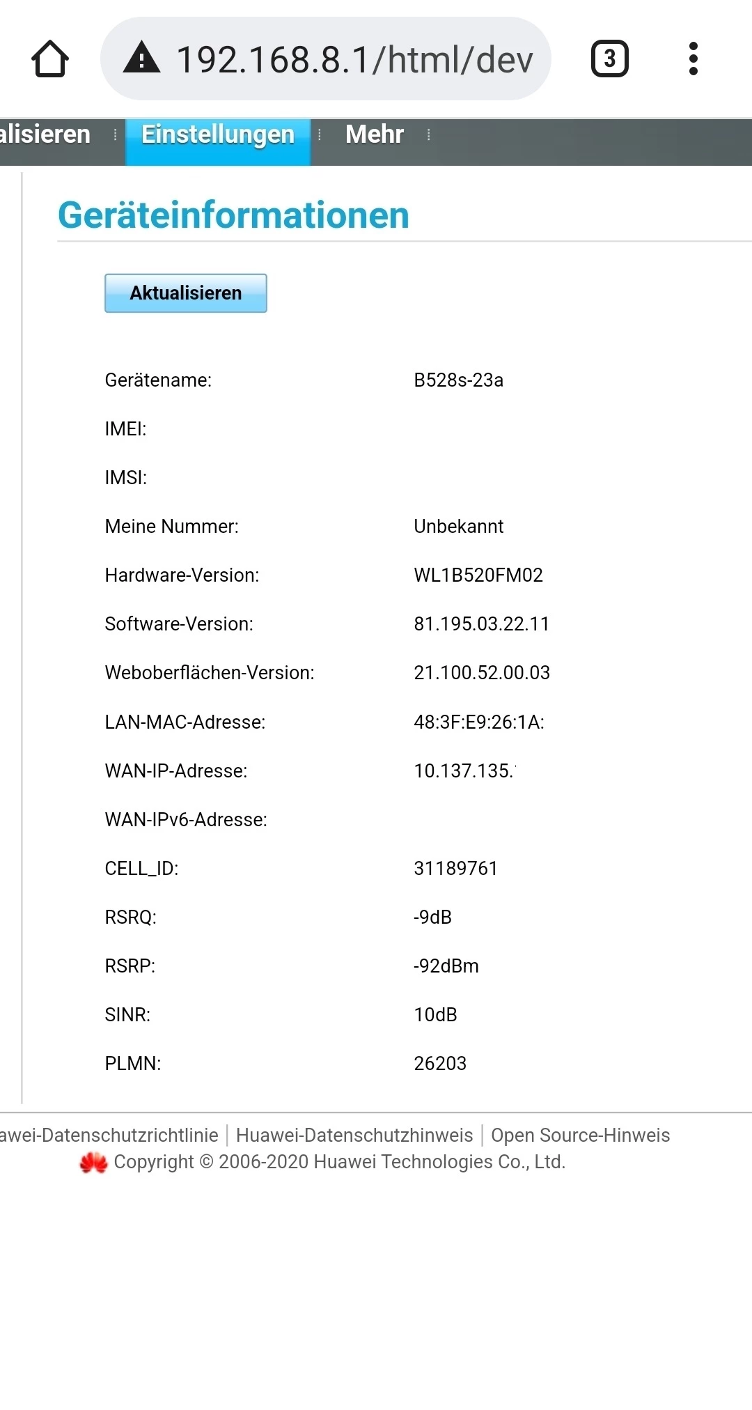 Magst du nochmals die Geräteinformationen deines Routers hier posten? (am besten ohne IMEI und IMSI)