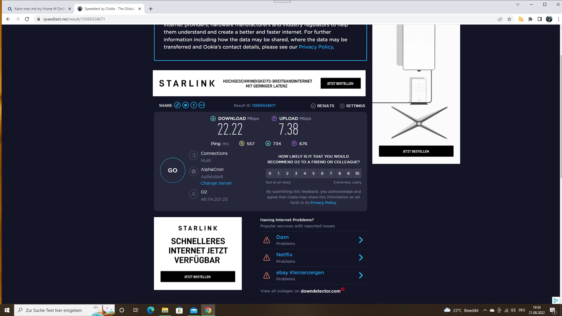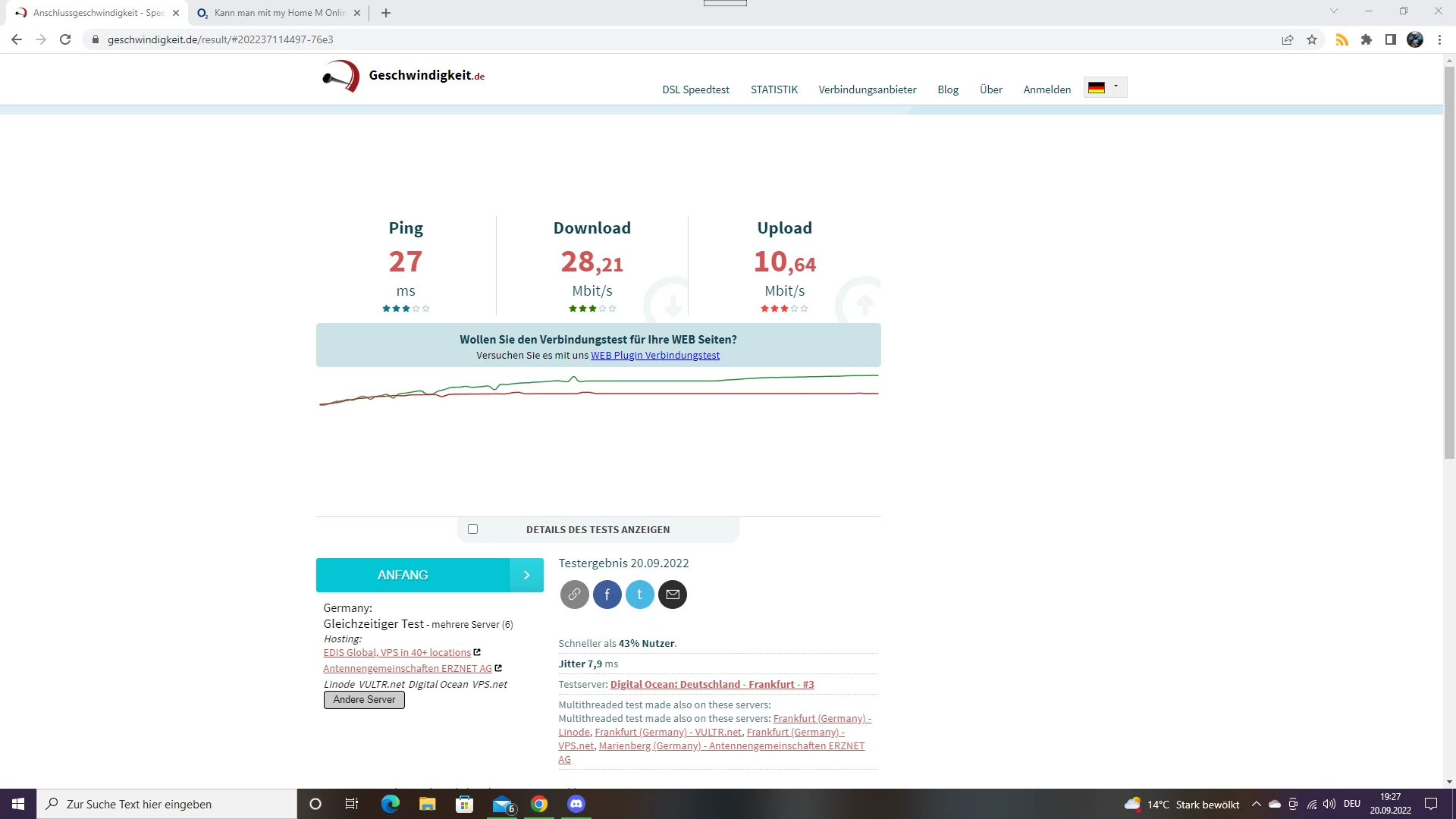 Wichtig ist aber der Ping. Mach doch mal bitte einen Speedtest und zeige uns ein Screenshot davon: