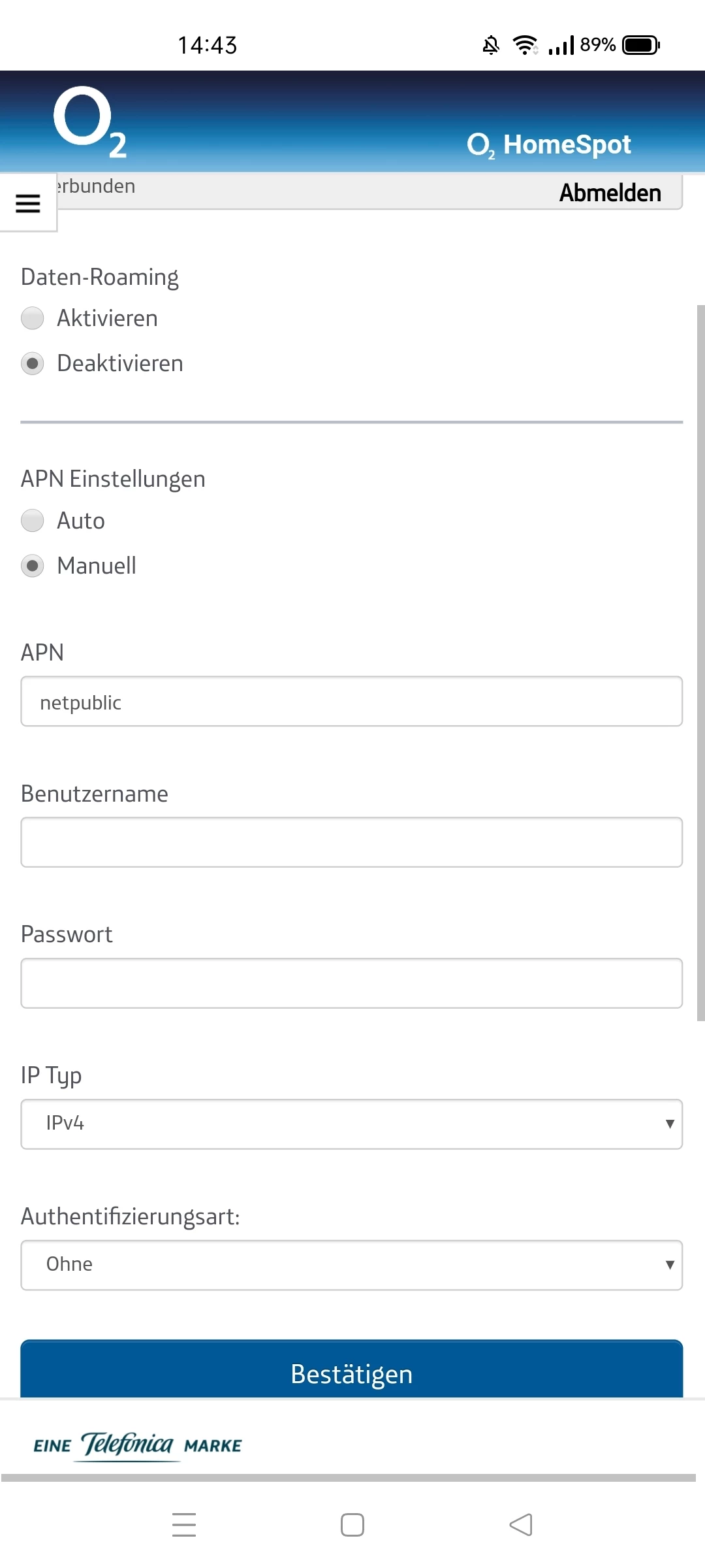 Wenn auch das nicht der Fall ist und ein Neustart auch nichts bringt/brachte, dann teste die HomeSpot-SIM bitte in einem LTE/5G-Handy und richte es als HotSpot ein. Denke an Netpublic und Neustart des Handys oder schalte den Flugmodus ein und wieder aus, damit sich die SIM mit Netpublic einbucht Solltest Du jetzt Dich anmelden können, ist ein Fehler im O2-Netz auszuschließen und man kann die Fehlersuche auf den Router begrenzen.