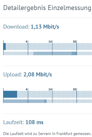 Die Nutzung eines Mobilgerätes anstelle des Routers brachte stellenweise minimale Besserung, allerdings so weiterhin so gering, dass es sich auch um Messungenauigkeiten handeln kann.