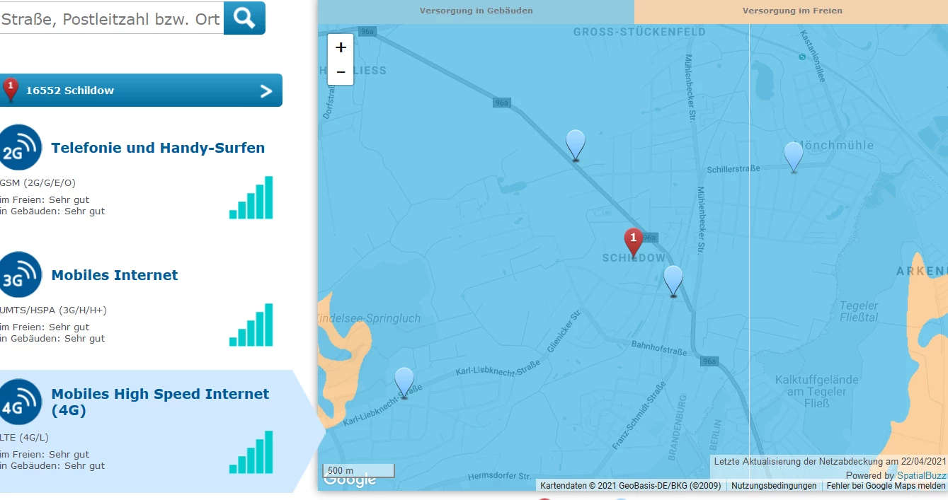 Danke für die Rückmeldungen. Verschiedene Aufstellorte hatte ich bereits ausprobiert. Ich weiß, dass die BTS für das D-Netz sich bei uns (16552 Schildow) im Kirchturm befindet … vor einigen Jahren hatte ich Empfangsprobleme und in Projekten für die Telekom gearbeitet. Ein Telekom-Mitarbeiter, mit dem ich eng zusammengearbeitet hatte, war so nett, das Problem durch die Technik untersuchen zu lassen. Wo sich die nächstgelegene BTS für das E-Netz befindet, weiß ich nicht. Ich habe versucht, das über die Cell-ID herauszufinden, bin aber nicht zum Ziel gelangt.