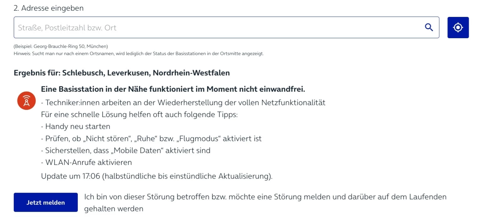 Hallo, ich habe seit mehreren Tagen auf einmal keinen Mobilfunkempfang in 51375 Leverkusen Schlebusch. Mit 5G nur 1 Strich und LTE ebenfalls.