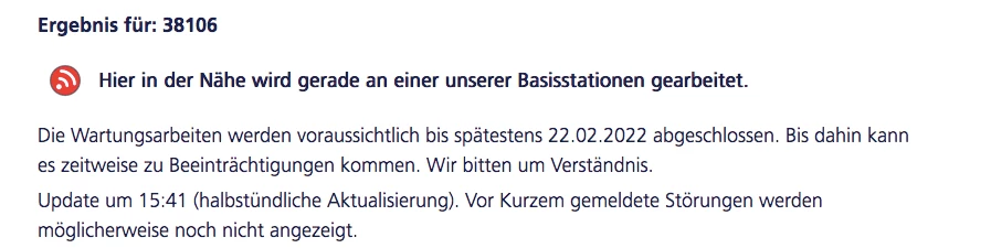 mit der PLZ als Referenz wird derzeit keine Störungsmeldung angezeigt. Klappt es bei dir wieder?