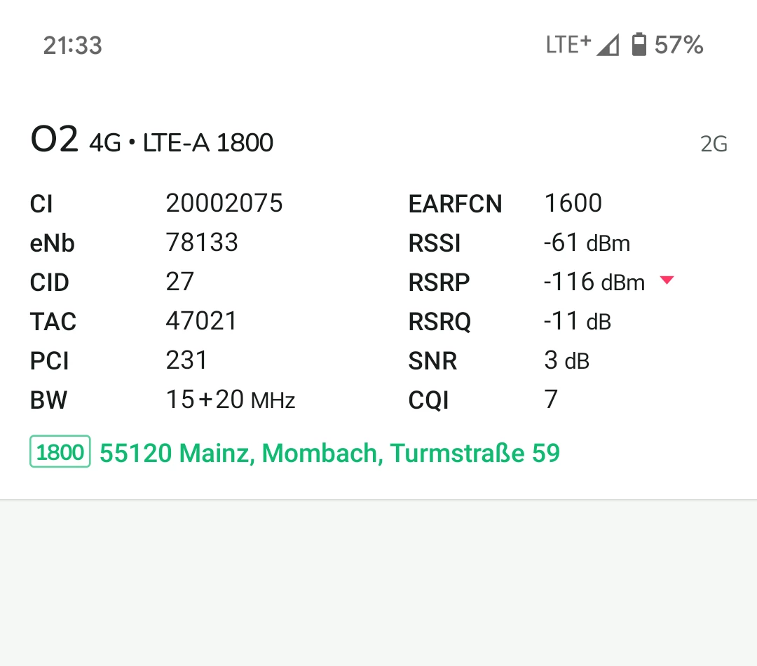 Ja, schon mehrere male, es ändert sich nichts. Hab schon paar Screenshots oben gepostet. Mit der app Network cell info lite Messungen gemacht.